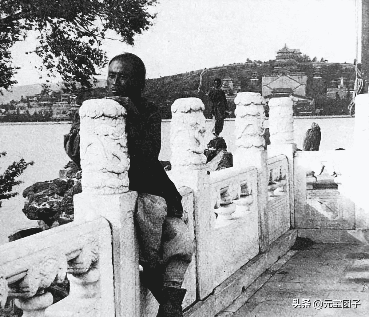 這是頤和園的侍衛,他上班時間坐在欄桿上偷懶,心思都不知道飄到哪里去了