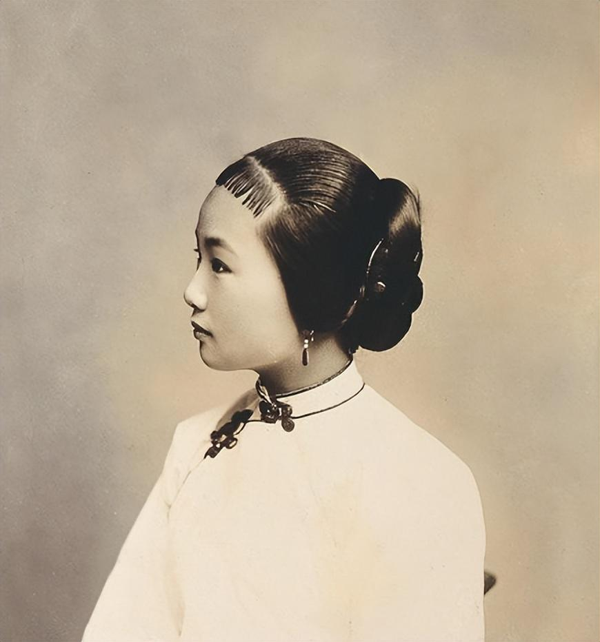 这位美女的发型一丝不乱,侧脸轮廓堪称完美。