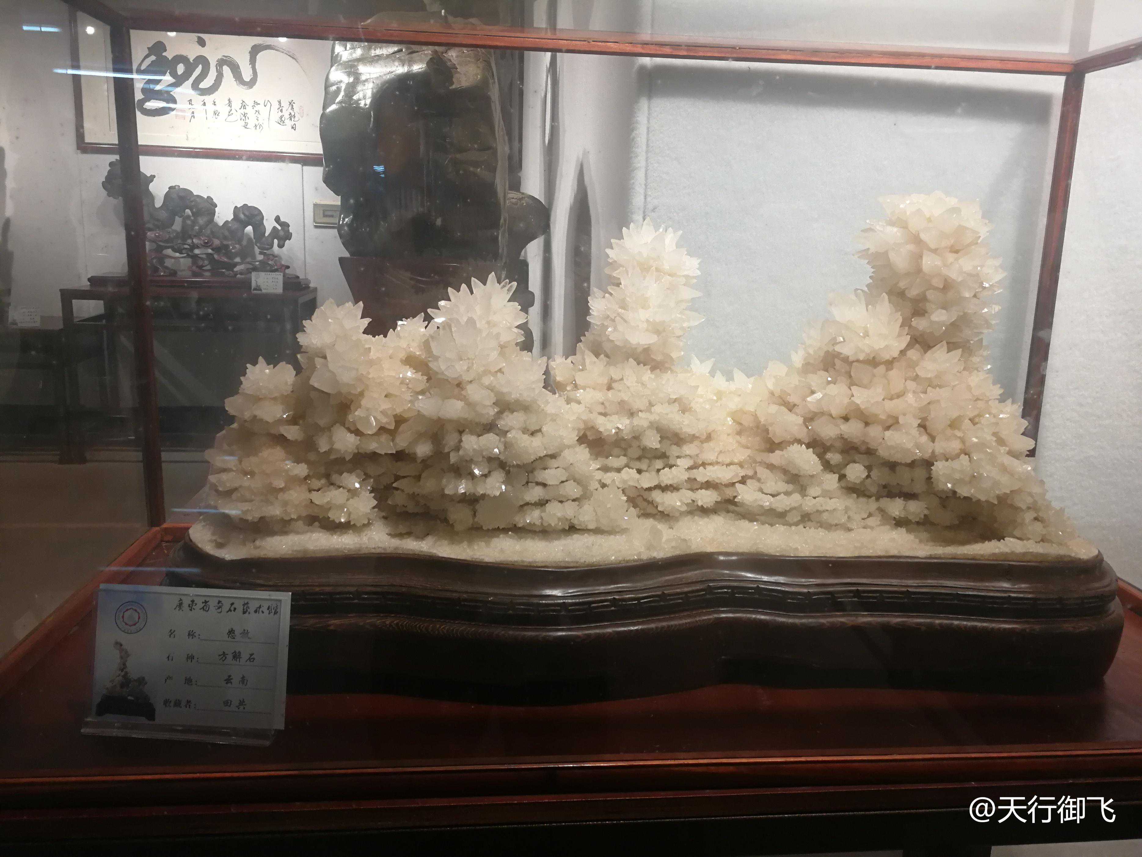 流花东苑艺博馆位于广州流花湖公园东堤,从2018年1月1日起,公园与广东省奇石协会在流花东苑合作建设自然博物馆地质展厅。地质展厅藏品品种多样,千姿百态,数量共计约四百件,品种达八十多种,可谓美在自然,妙在天成:既有那条纹古朴、苍劲有力的卷纹石,彷如初展雄风的巨狮,可谓形神兼备;也有直径近一米的夜明珠,璀璨夺目,世间稀有;更有那一块纯白色的大型方解石,形似一碗高高堆起的大米饭,粒粒米饭晶莹剔透,预示着仓廪丰足……在丰富展览藏品的数量和品种的基础上,地质展厅还配设文字和图片介绍,如丹霞山地形地貌介绍和地质构成知识等,相关地质知识介绍宣传介绍达二十多件。