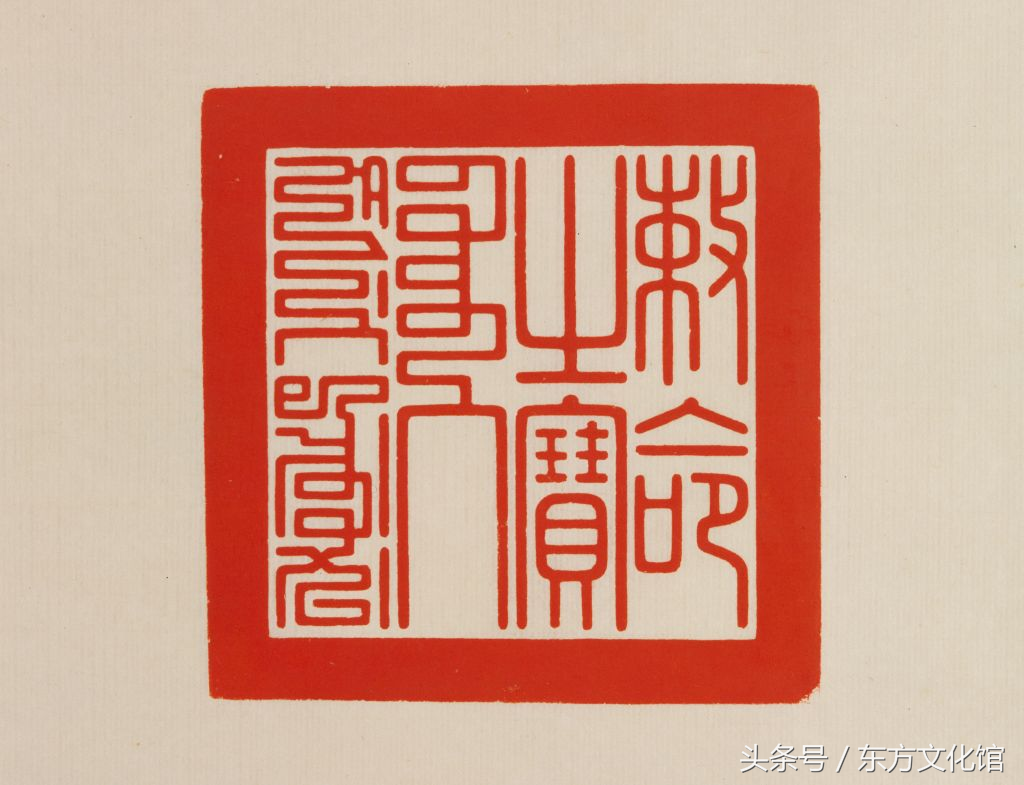 《宣统宝谱》录“宣统御览之宝”共4方,印文大小尺寸不等。这是其中较大的一方,曾钤于溥仪御览过的字画上。