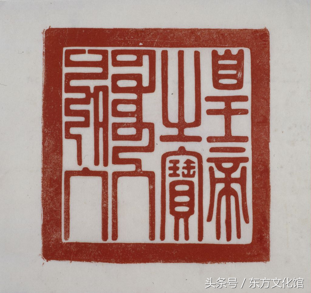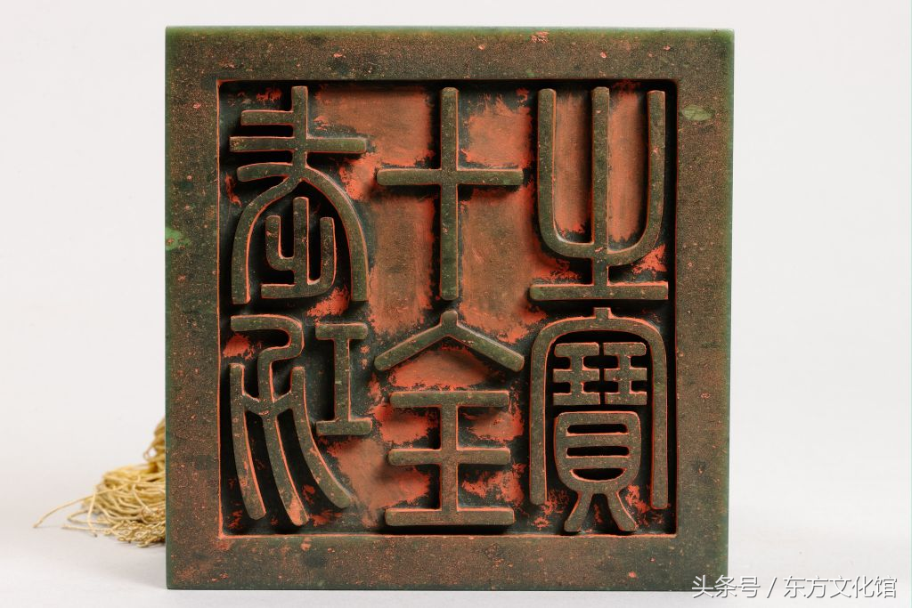 皇后之宝,通高10cm,纽高6cm,印面14×14cm,重1800g。