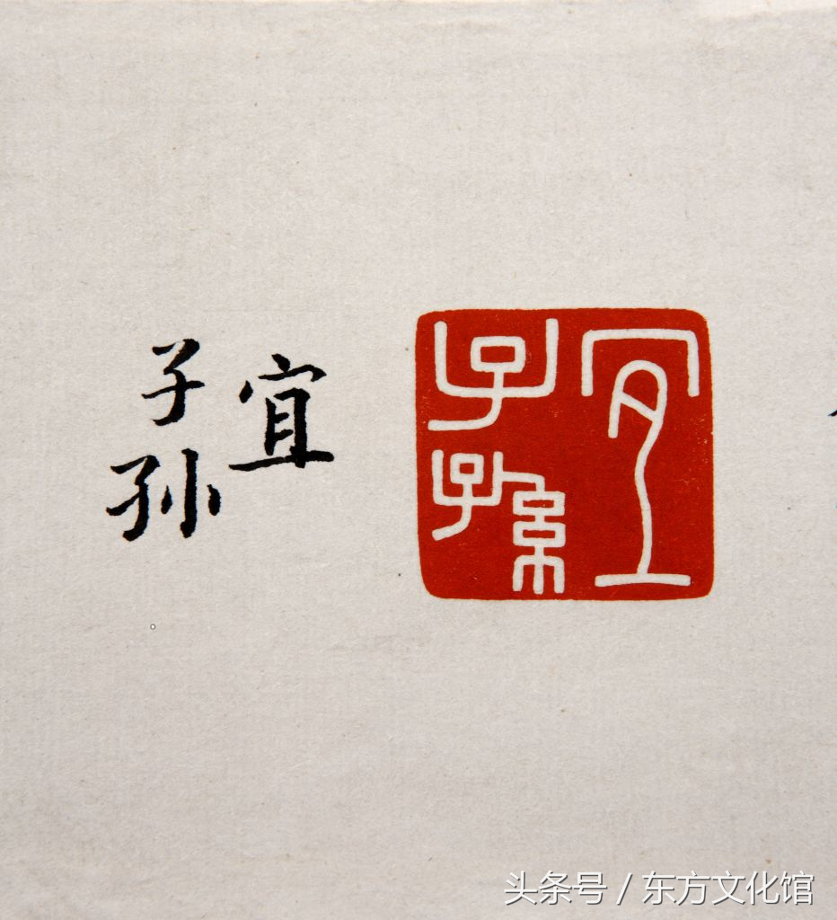 三希堂,在紫禁城内养心殿西暖阁,因这里藏有稀世之珍的王羲之《快雪时晴帖》、王献之《中秋帖》、王珣《伯远帖》而得名。从艺术鉴赏角度看,“三希堂”便成为著名艺术品的典藏地而闻名于世,与之相对应的“三希堂精鉴玺”和“宜子孙”玺便当然成为鉴定性标志。二玺主要钤盖于《石渠宝笈》、《秘殿珠林》初、续编著录过的书画作品之上,具体使用情况在《石渠宝笈》、《秘殿珠林》初、续编的“凡例”中有明确说明。如《石渠宝笈》初编,凡书画分贮乾清宫、养心殿、重华宫、御书房四处,俱各用鉴藏玺以别之,又“石渠宝笈”、“乾隆御览之宝”二玺,册、卷、轴皆同。上等者则盖以“乾隆鉴赏”、“三希堂精鉴玺”、“宜子孙”三玺。而《石渠宝笈》、《秘殿珠林》续编入选者,则钤用“乾隆御览之宝”、“乾隆鉴赏”、“三希堂精鉴玺”、“宜子孙”、“秘殿珠林”或“石渠宝笈”、“秘殿新编”或“珠林重定”、“石渠宝鉴”或“宝笈重编”。而这两方玺在钤盖时的位置也基本固定,一般都在作品的右下方,且“三希堂精鉴玺”在上,“宜子孙”玺在下。