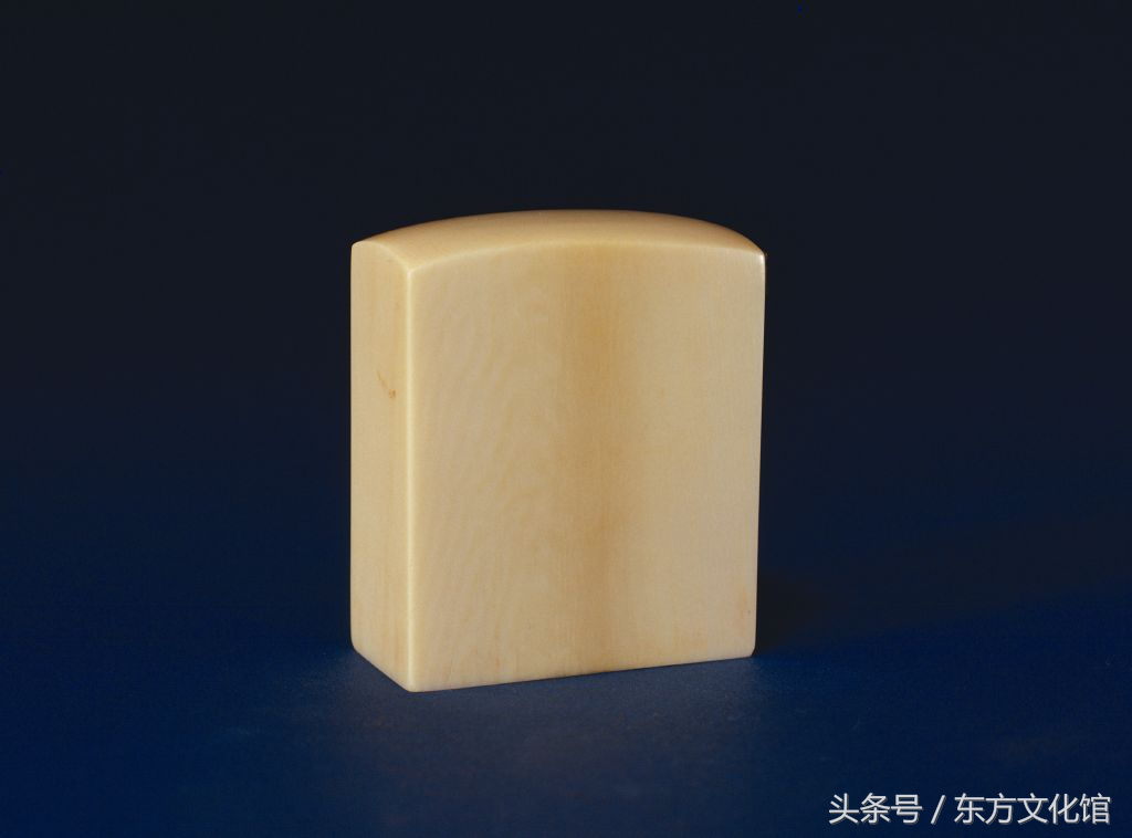 “无逸斋精鉴玺”,清宣统,象牙质,光素长方形玺,汉文篆书。面宽2.4cm,长4.9cm,通高5.9cm。