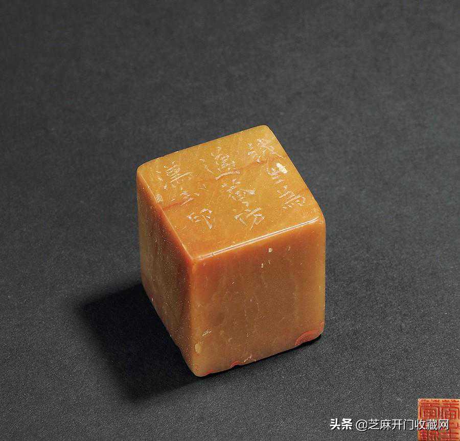 吴昌硕为刘泽源刻1895年作寿山黄金黄田黄石素方章,尺寸:2.7×2.7×6.4厘米;重88.74g,成交价:RMB4,025,