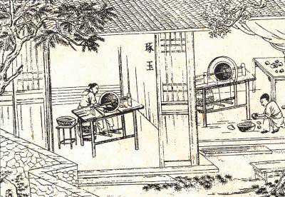 《天工开物》中的明代琢玉图