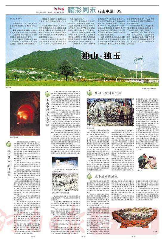 “《汉书》记载,独山当时叫玉山,现在独山脚下沙岗店村,汉代叫‘玉街寺’,是独玉加工销售中心,家家采玉雕玉,客商往来如梭,治玉之人达千人之多。”南阳独山玉专家江富建说。