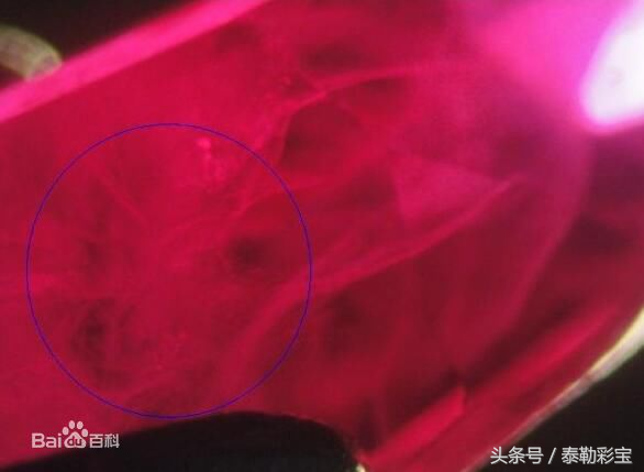 目前市面上人工合成的红宝石主要采用三种方法:焰熔法、助溶剂法、水热法,这三种方法处理下的红宝石也可以根据内部特征的差异而把它鉴别出来。其中较易区别的是焰熔法处理的红宝石,若观察到内部含有弧形生长纹和气泡,就可以确定为合成红宝石。