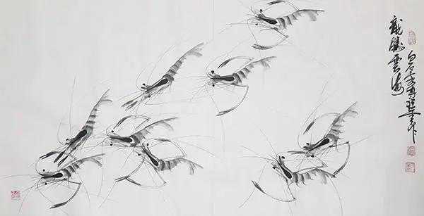 写意的虾、蟹也是描写对象周密观察的结果。只从寥寥数笔的表面上看是很简单的,经过周密仔细的观察,在寥寥几笔之中就会感到有充沛的生命力了。