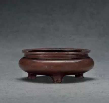 口沿一周起线,平沿内倾,恰如明式家具案面边抹均匀的“栏水线”,口沿下方束腰起线作双弦纹,经典的明式家具也有不少类似的在束腰上的处理。