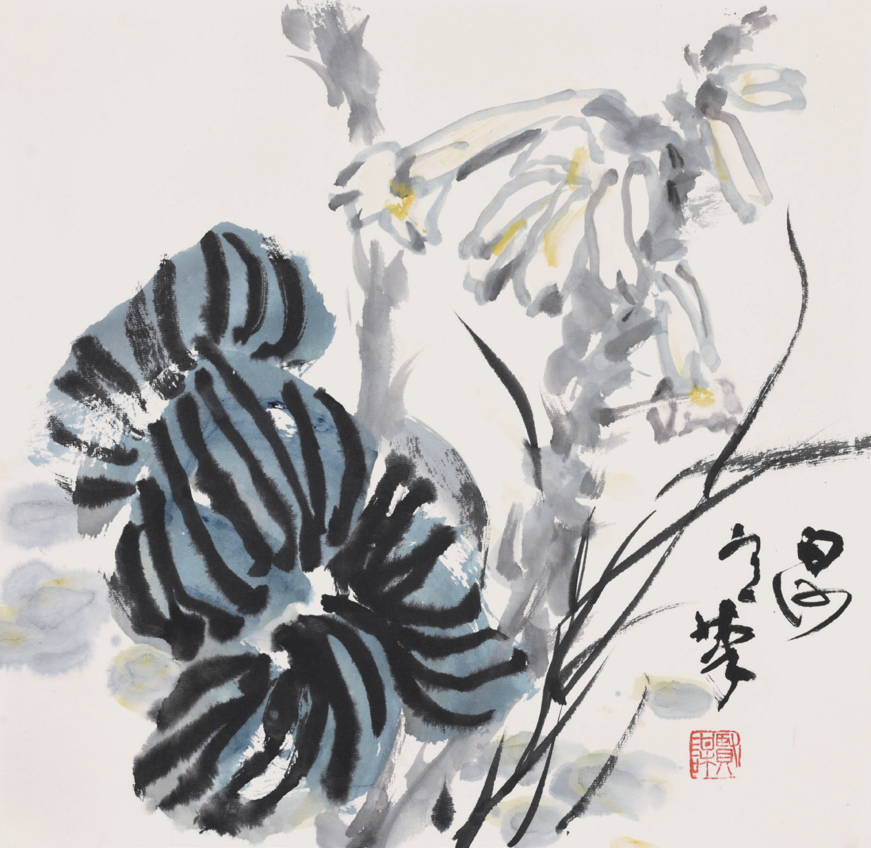 笔趣还衍生色趣,贤谋用色非常注意色彩的搭配,追求色彩单纯中的变化,喜欢色彩渗和宿墨,追求雅趣,有别于齐白石用色的大方贵气。