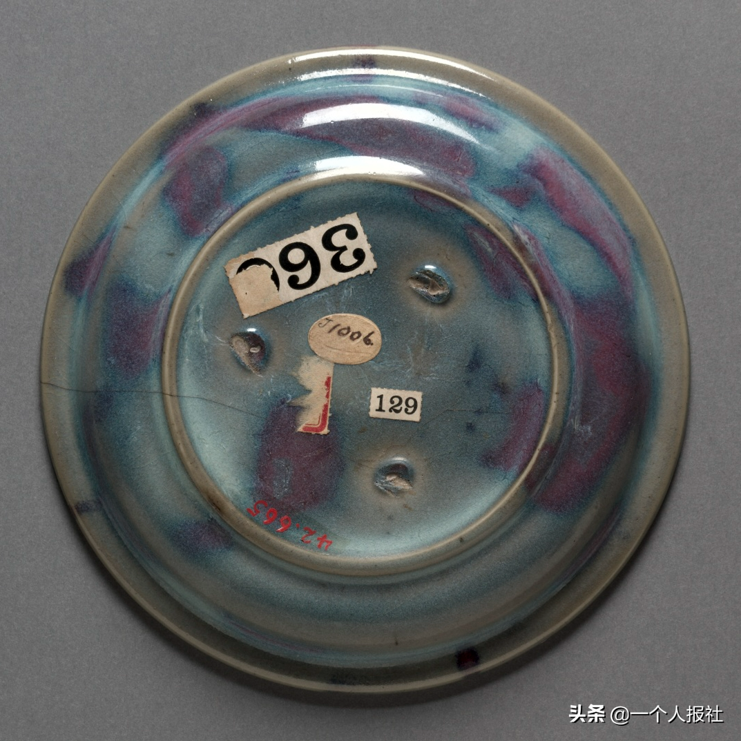 金钧窑蓝釉红斑折沿盘