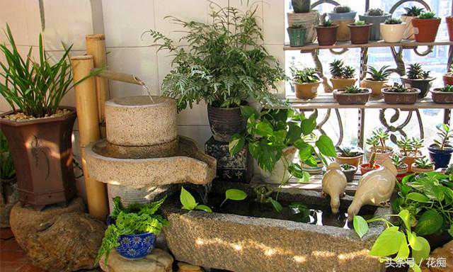 用石磨做水景,绝对称得上创意十足,将原本是冷冰冰的石头,配上潺潺流水,便让这个老物件多了几分灵动之美,不过制作石磨水景还需要我们动手制作上水设备,多是选择竹子将水抽到高出,然后倾斜到石板上顺流而下,宛若一道迷你瀑布。