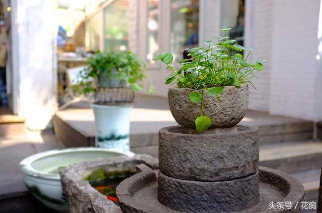 石磨做花架,这个比较简单,将石磨摆放在显眼而又不碍事的地方,将所种花卉摆放到上面,这样一个简单而又具有时代感的花架就形成了,估计很多人看到后都会喜欢的不得了,平时可保持石磨湿润,然后就会在上面长出青苔,这样就更有复古感了。