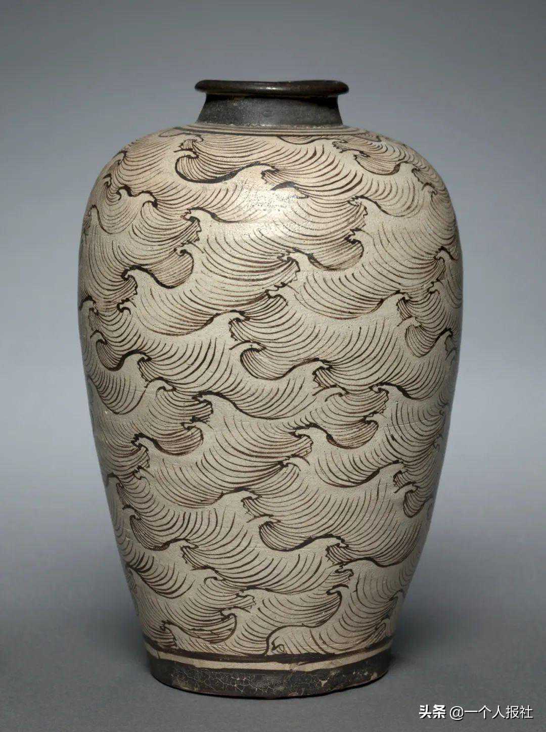 南宋吉州窑褐彩绘波涛纹梅瓶