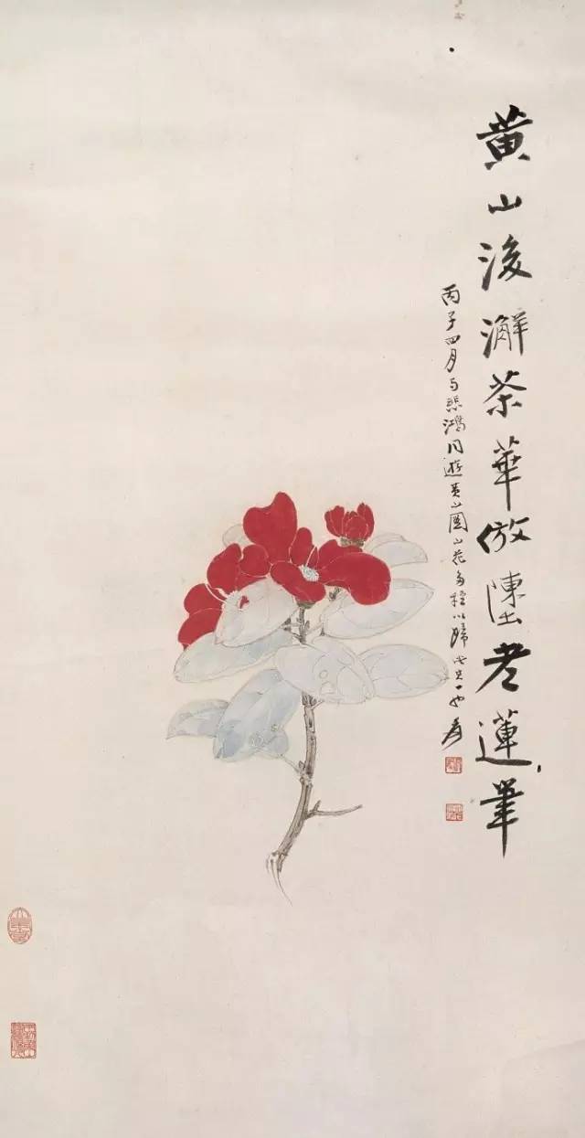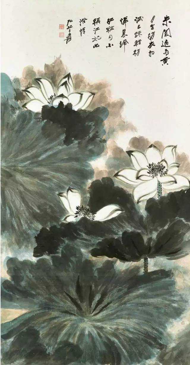 泼彩是在泼墨技艺的基础之上发展而来,是一种高度概括的抽象手法。张大千在画作中对于光线阴暗等方面,加入了西洋画写实的手法,是对中国画的突破。