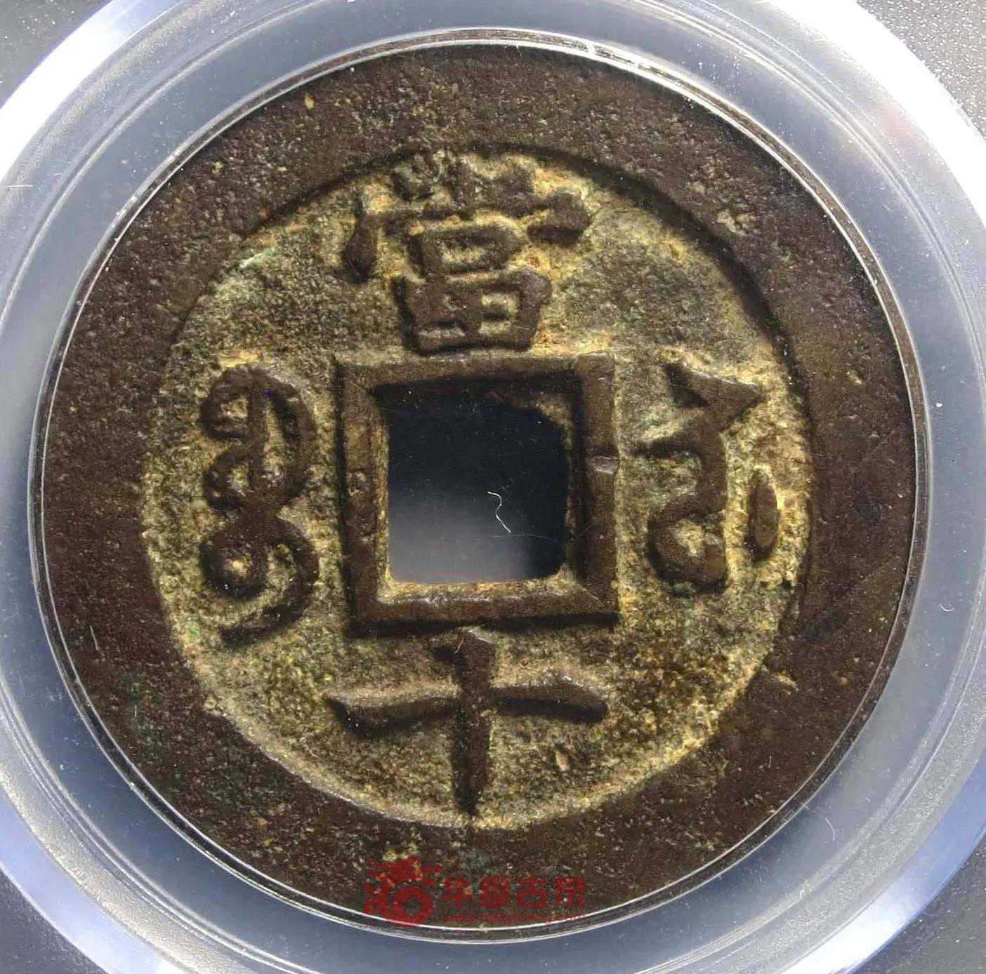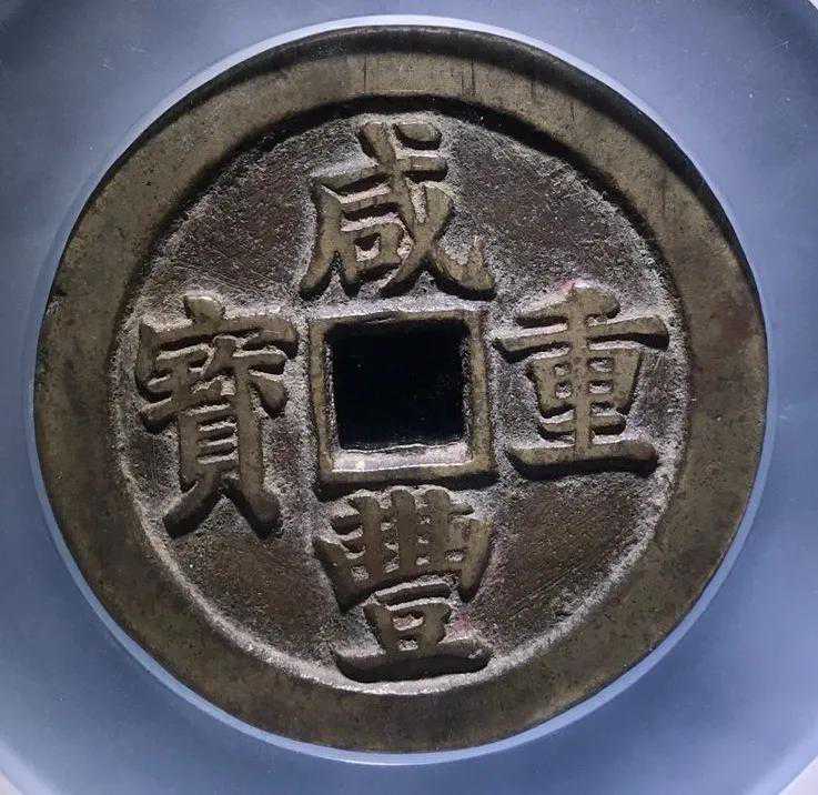 此版咸丰元宝之“元”的上部“二”非常巨大,显得“元”字头重脚轻。非常有特色。近日成交价在20000-40000左右。