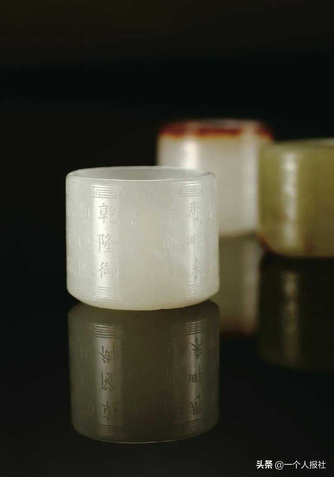 白玉、黄玉、白玉带沁御题诗扳指清乾隆