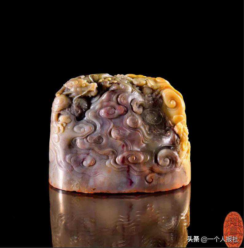 寿山芙蓉苍龙教子钮「古希天子之宝」清乾隆