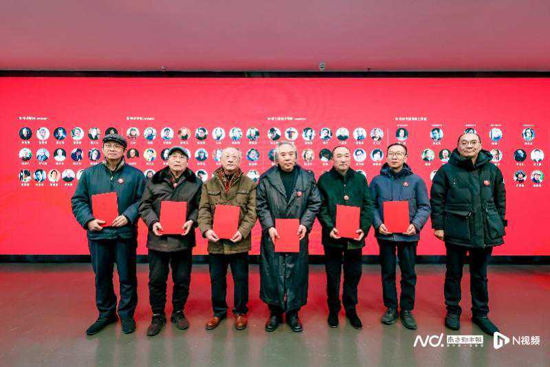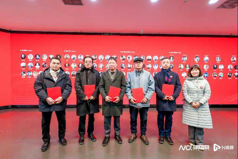 天津美术学院党委书记路波为津美书院学术顾问代表张京生、韩文来、霍春阳、何家英、卢禹舜、张建会颁发聘书。
