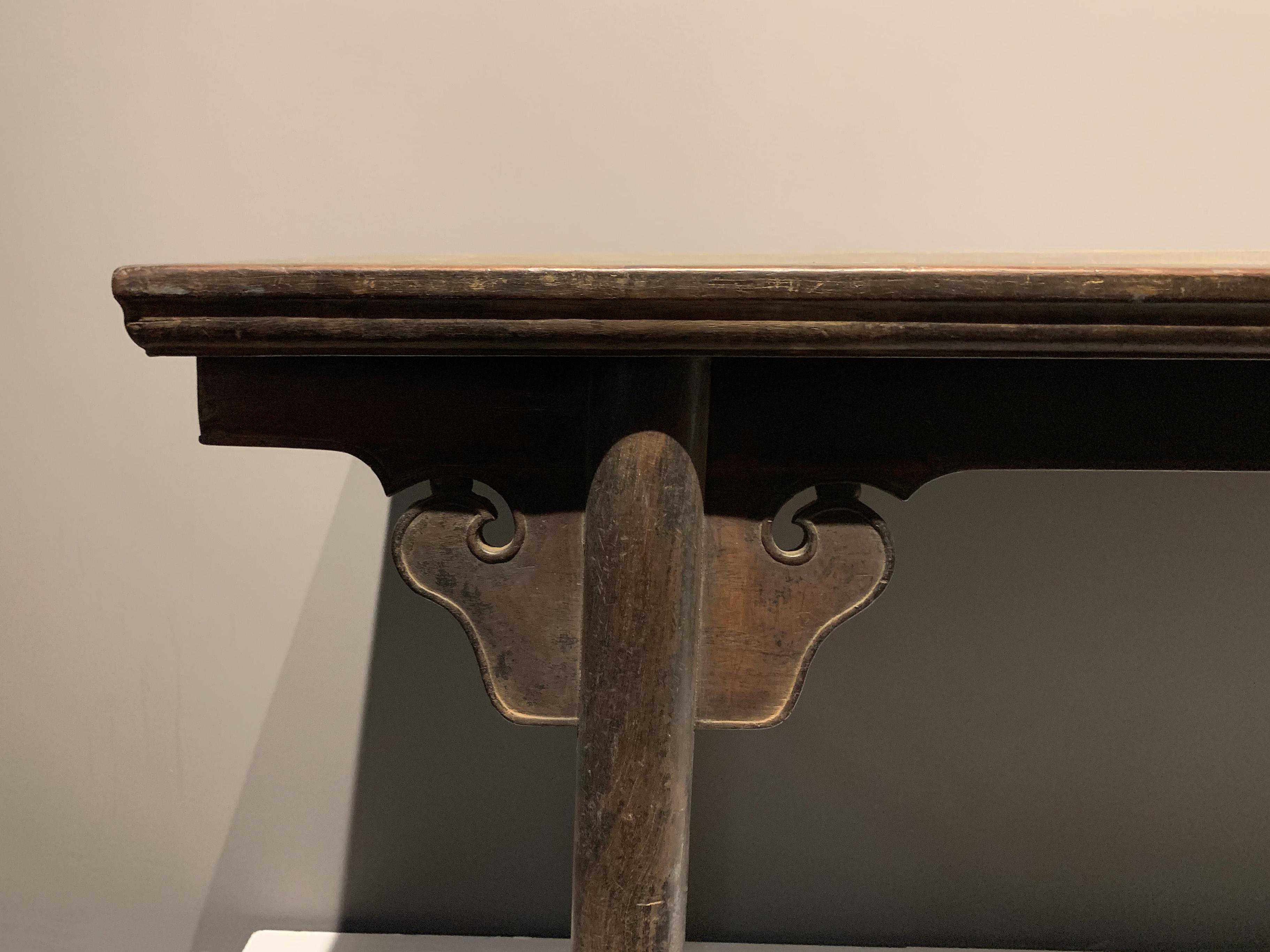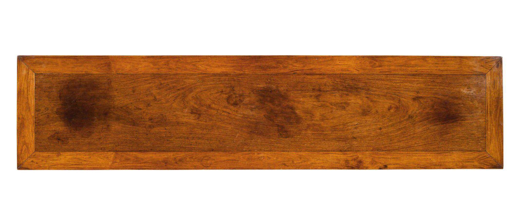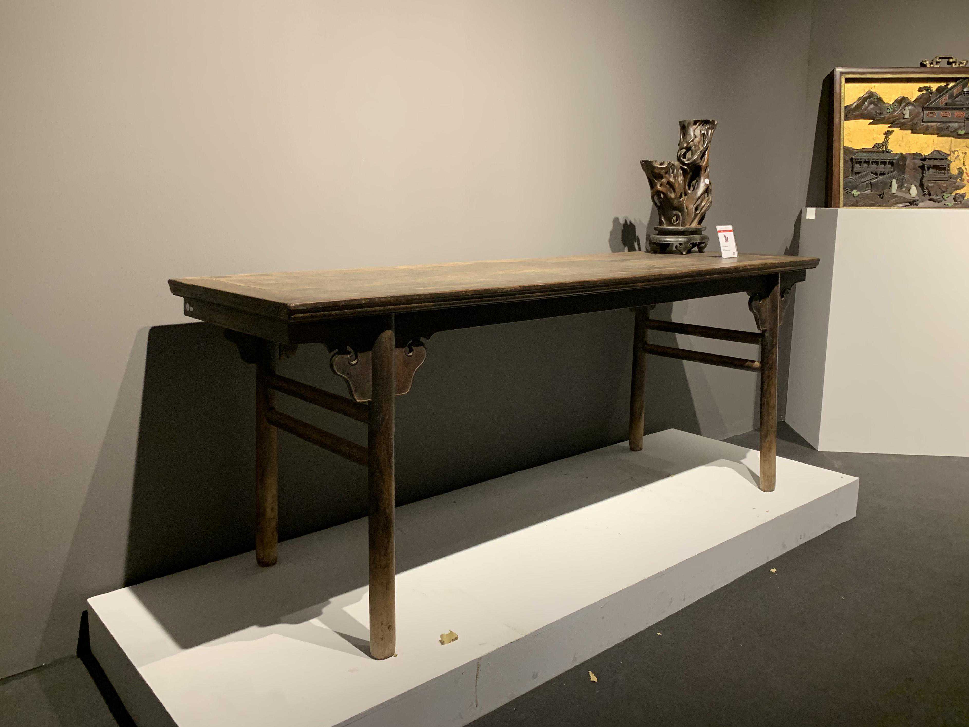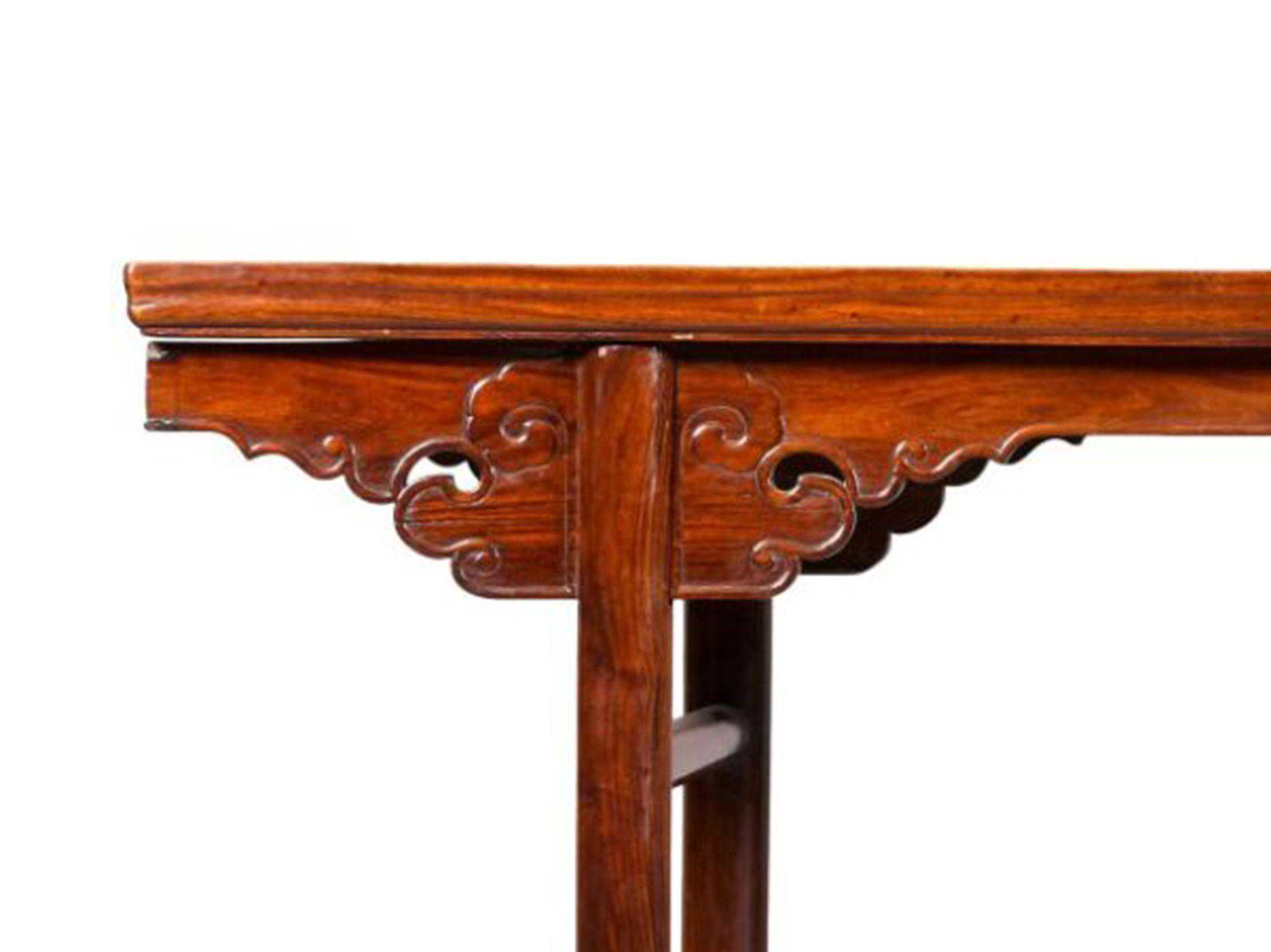 如此豪华的牙板配最基本的腿枨样式,巨大反差突显出特别,再加上超长尺寸和独板案面,不得不说这是一件好东西。