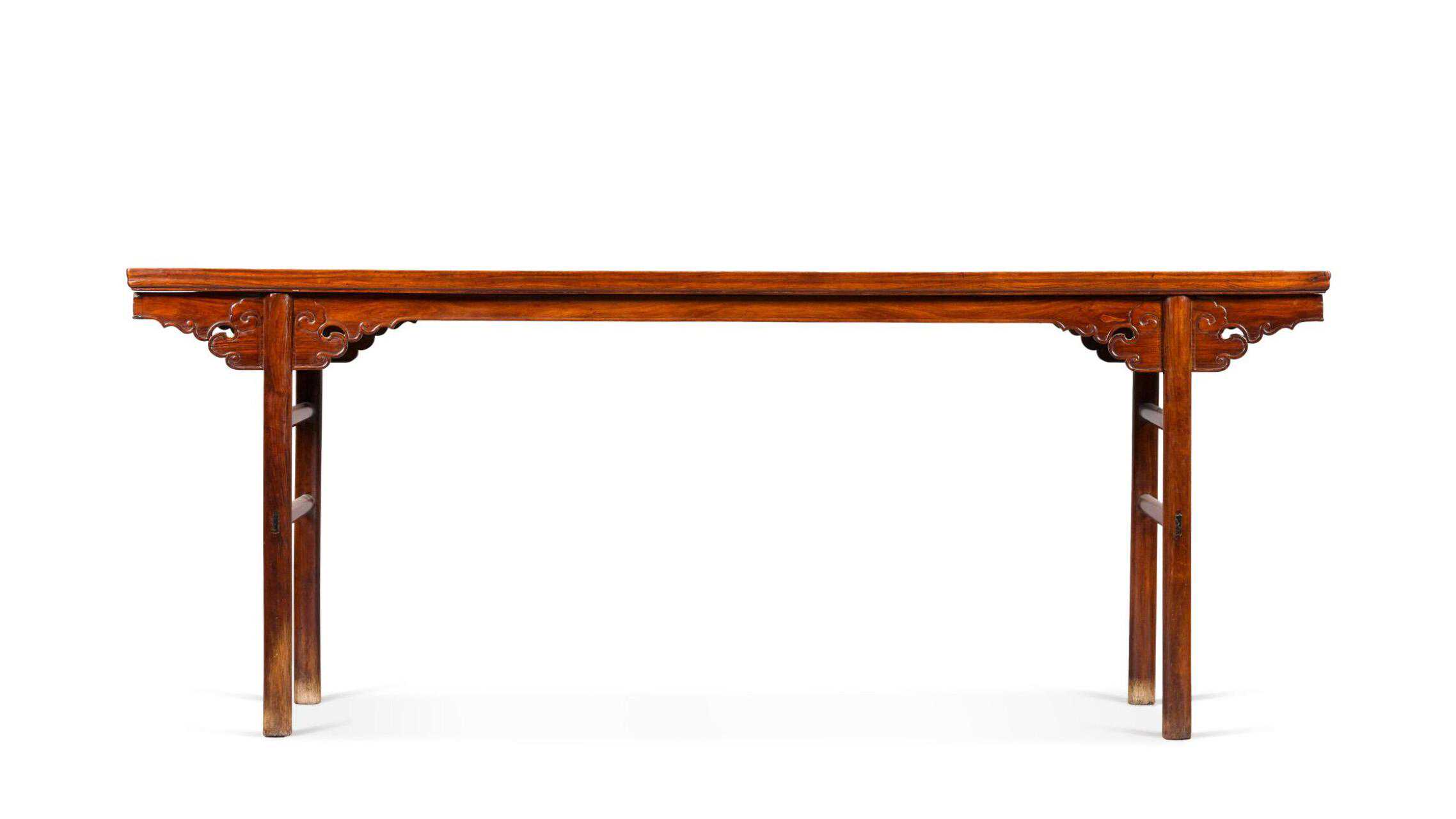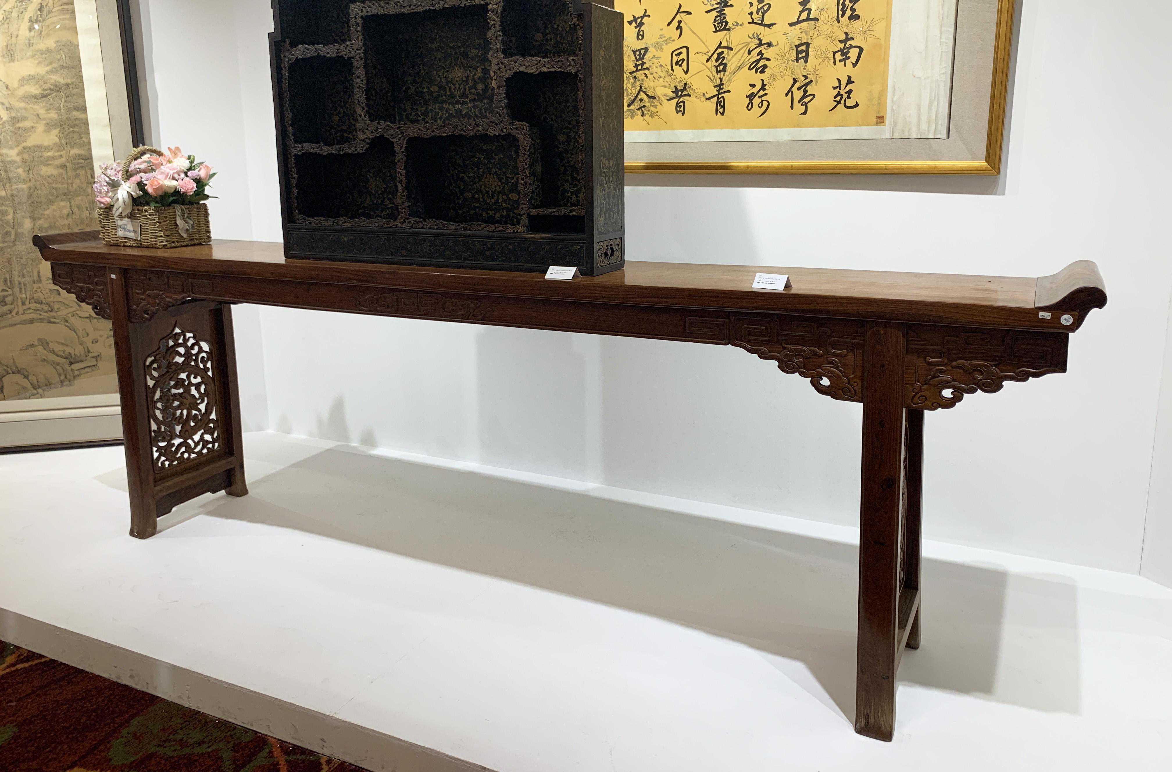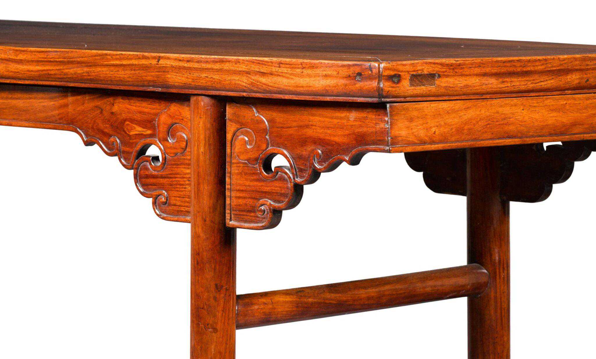 黄花梨夹头榫卷云象鼻纹平头案,断代到明,估价300至400万港元。