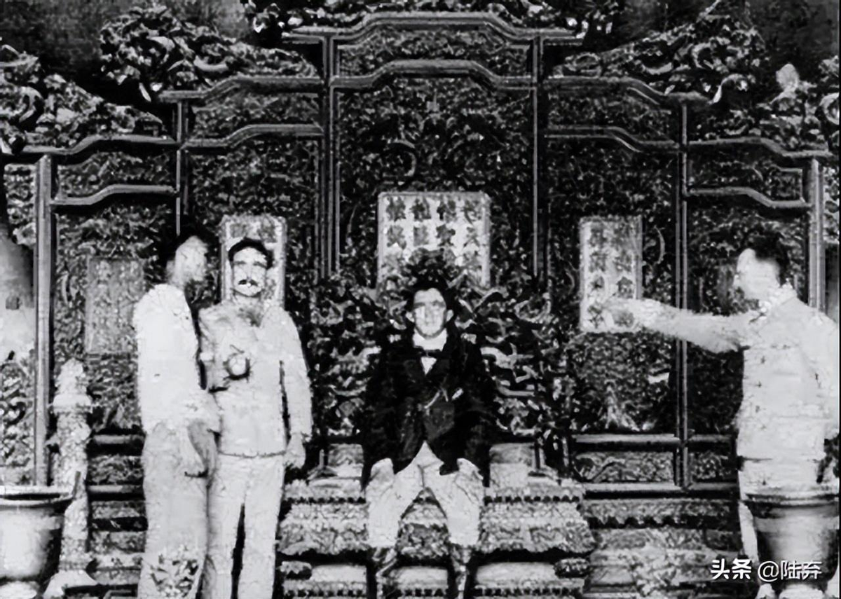 八国联军攻入北京以后,洋人也坐在上面,并留下了一张合影。