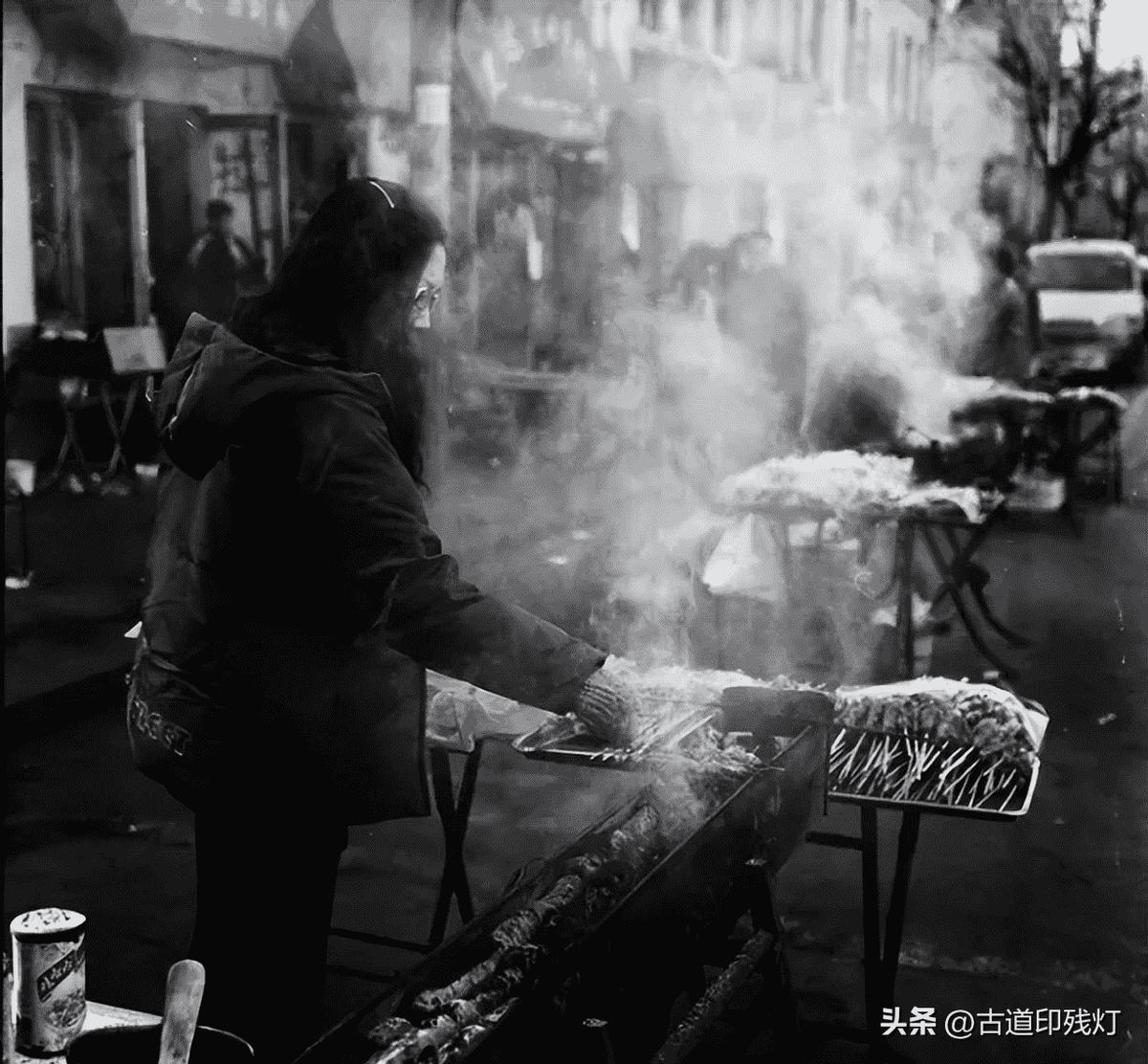 市场三路的烧烤摊前烟火缭绕,热腾腾的炭火,大块的烤肉,是那个年代人们的舌尖挚爱。