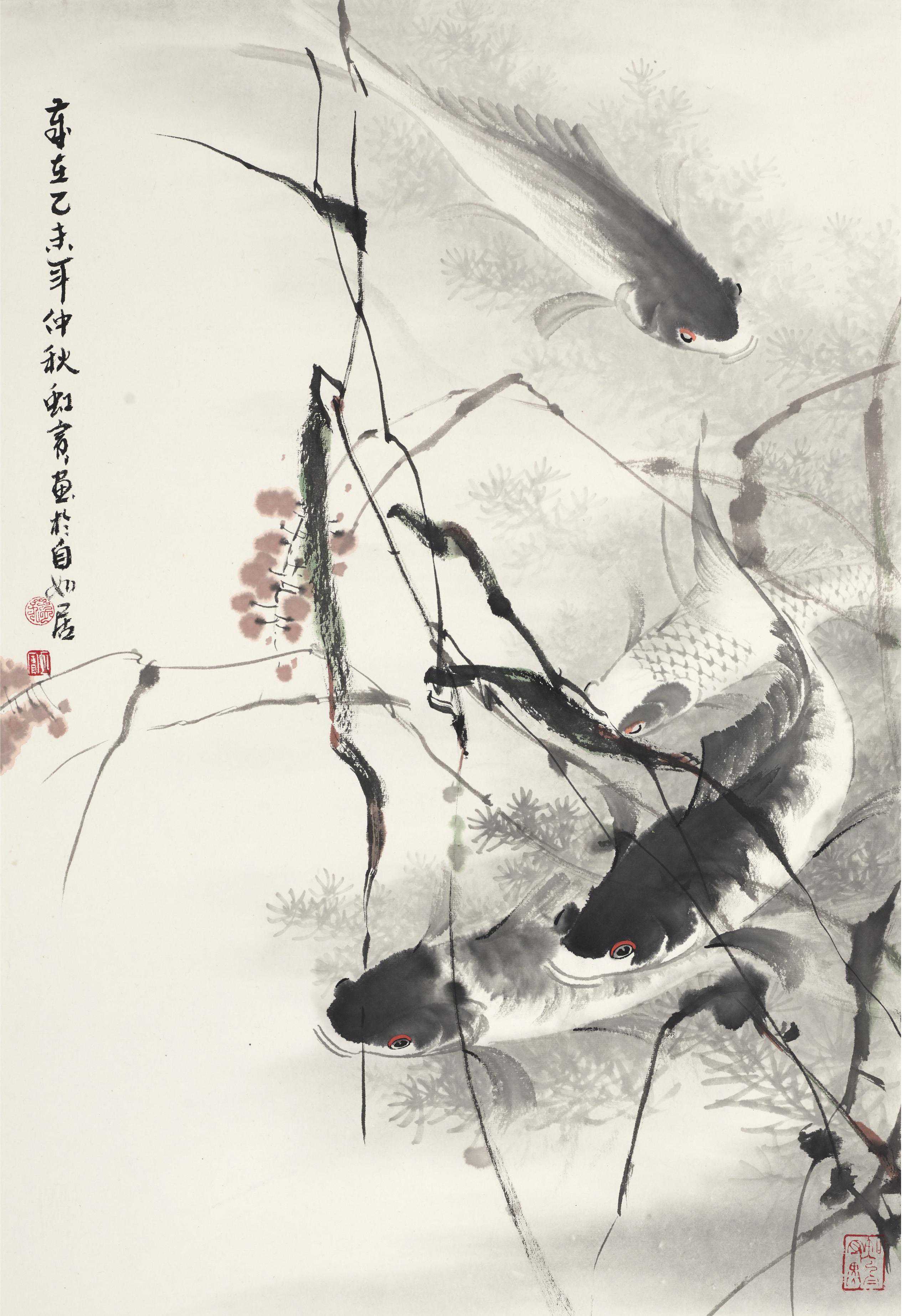 濠梁秋水之上,惠子曰:“子非鱼,安知鱼之乐?”以及庄生的回答:“子非我,安知我不知鱼之乐?”这本来就是无解的一个哲学悖论,永远没有答案,也不应该有答案。这和茶道的“茶禅一味”是一个道理:冷暖自知。子非我,安知茶味,安知冷暖?也就是说,茶可以喝的是寂寞,喝的是友情,喝的是快意人生……小小斗室,因为一瓯茶就可以精鹜八极;白白片纸,有了几尾鱼儿就因此生机勃发。观画的感受是独自的、个人的,如同体味茶与禅。我看施生的画:游鱼活泼、水藻漂浮、磐石坚韧,造化万物在他笔下显得那么自然生动,活泼可爱。在画里不仅能读出水的空灵,生的气息,还读出了他作为一个文人画家忧郁的气质和淡然自若的处事方式。这还仅仅是对画初步的一个印象,俗话说得好:一千个观众,就有一千个哈姆雷特。一千次开卷,就有一千回感悟。夜深人静披图幽对,深入玩味之余更有一层深刻的体会:觉得他是在通过画鱼,追求游走于皮囊之外的精神自由,悠然自得之际身心两忘。画鱼境界一般可分三种,一种是画得很像真的鱼,一种是画鱼实为画水,一种是画鱼不为画水。第一种不入品格,在此就无需赘言了。后两种这分别代表两层境界:入世和出世。入世者如沪上名家吴青霞画鲤如鱼得水,看似画鱼,实际上是画鱼水情,鱼与水相依相宜自由自在。另一层境界是出世,以八大山人《拒霜游鱼图》等为代表的,用极简省的笔墨画出游鱼,笔墨删而又删减而又减,画的是潭中空寂境界,鱼与观者相乐。柳宗元《小石潭记》中有:“潭中鱼可百许头,皆若空游无所依,日光下澈,影布石上。佁然不动,俶尔远逝,往来翕忽,似与游者相乐。”而这两种境界结合在施生画中就是:水殿和龙宫皆清凉。观者适闲于水殿清凉自在,游鱼悠游在龙宫自在蹁跹,大家互相欢喜、相互通会,子非鱼亦非我,安知我与鱼乐与不乐?