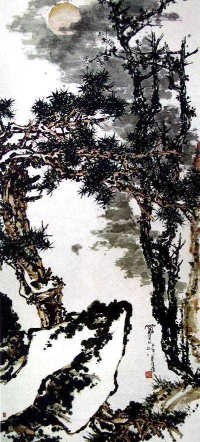 潘天寿《松石梅月图》