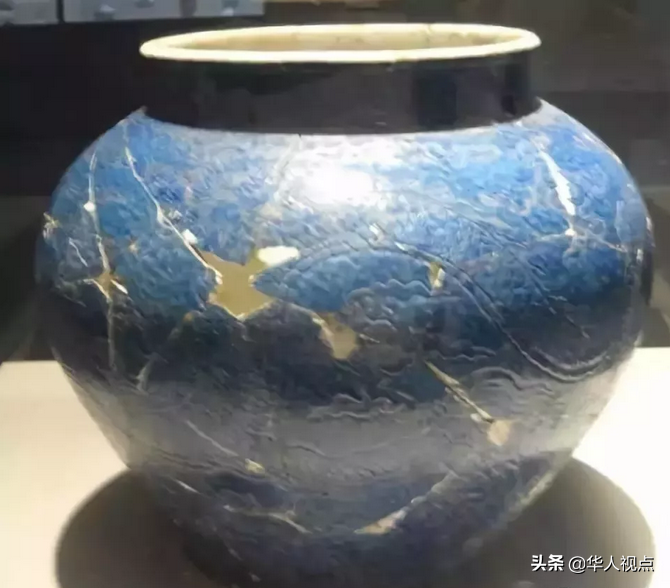 苏麻离青黑晶斑,器面有橘皮及凸凹青花钻胎,色显苏料的浓艳,