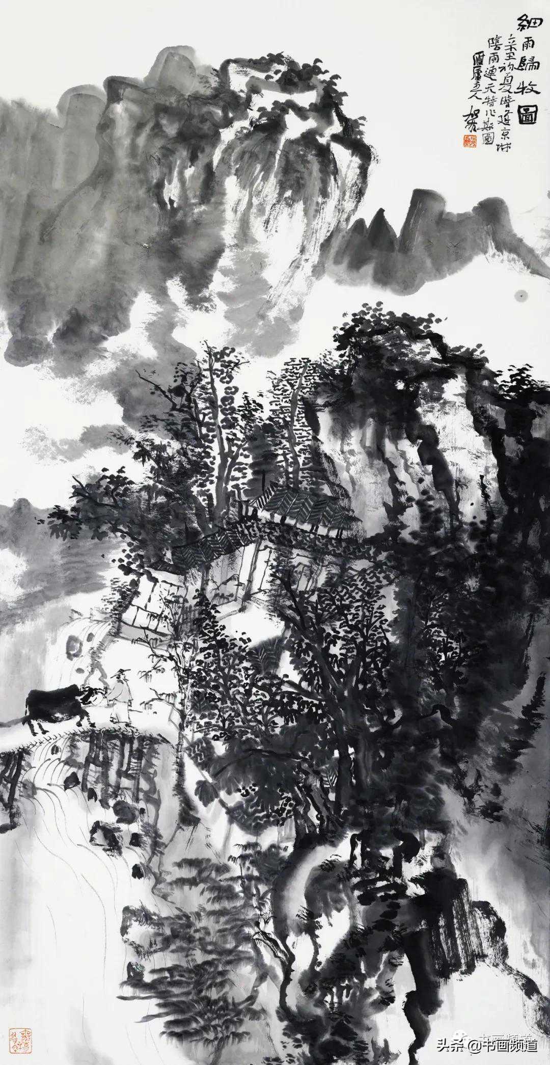 《细雨归牧图》138x69cm