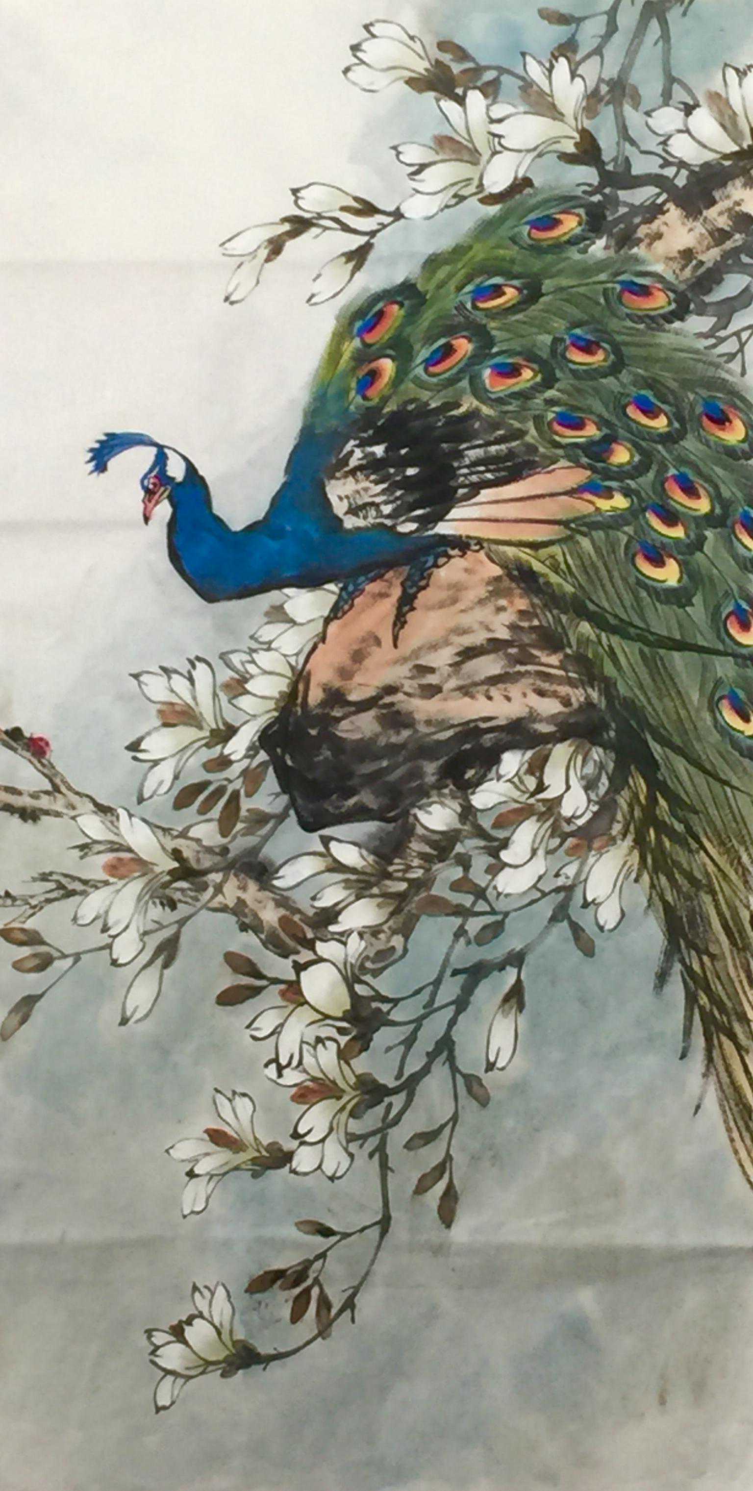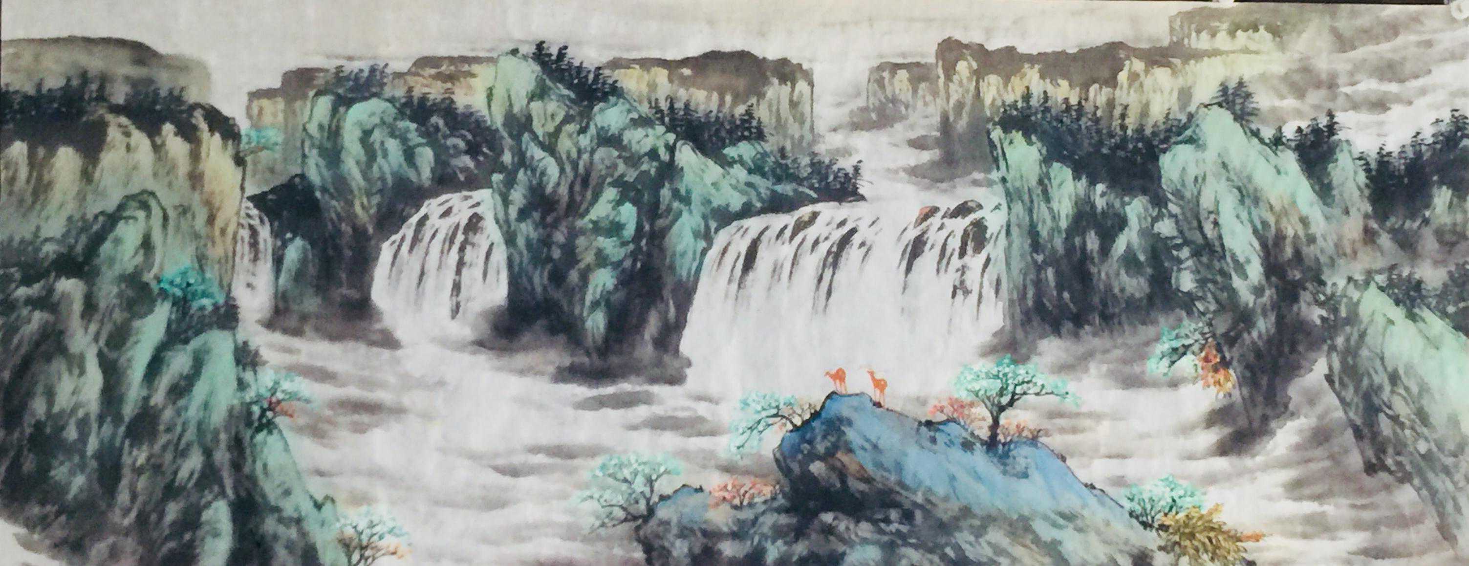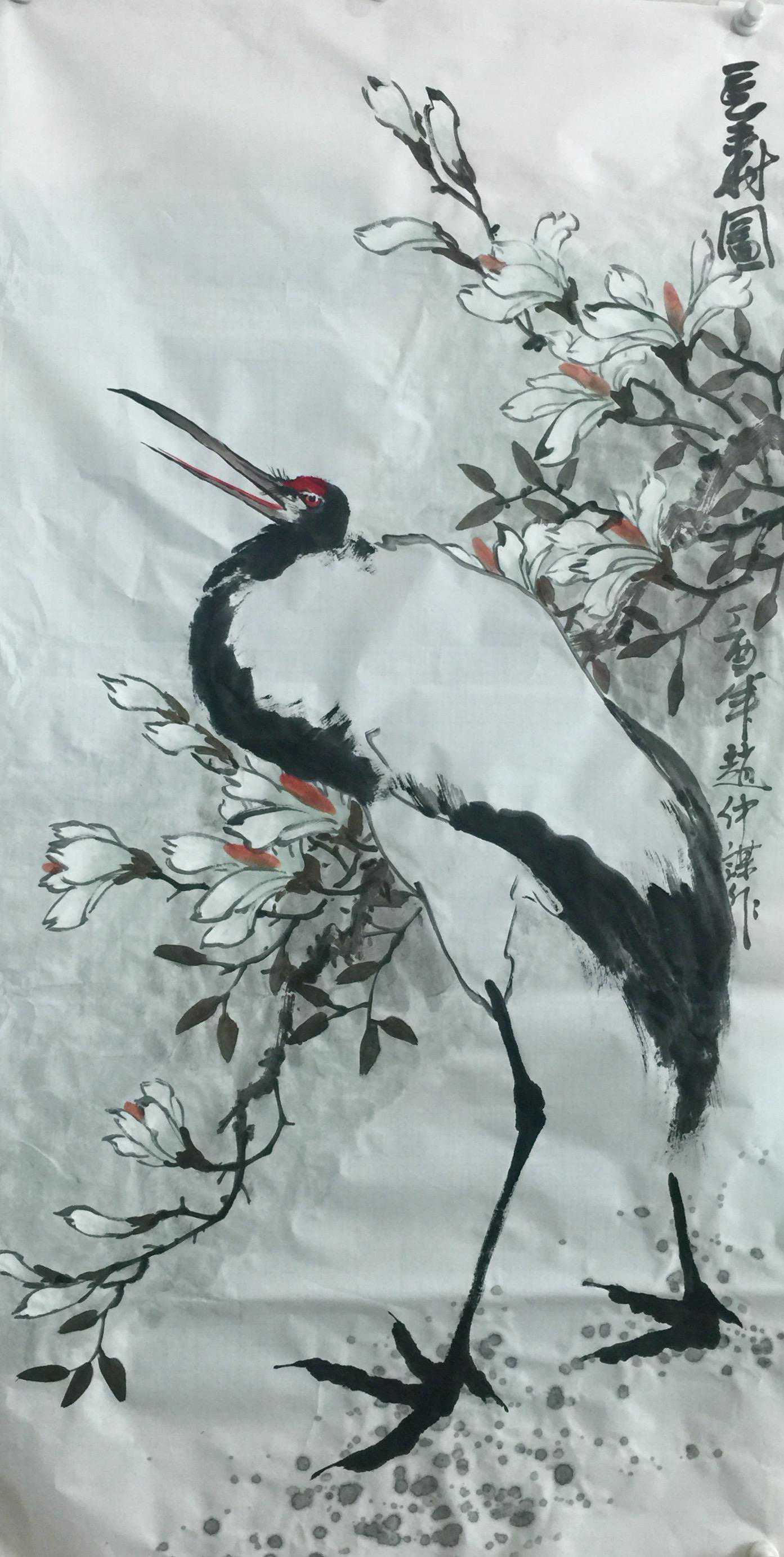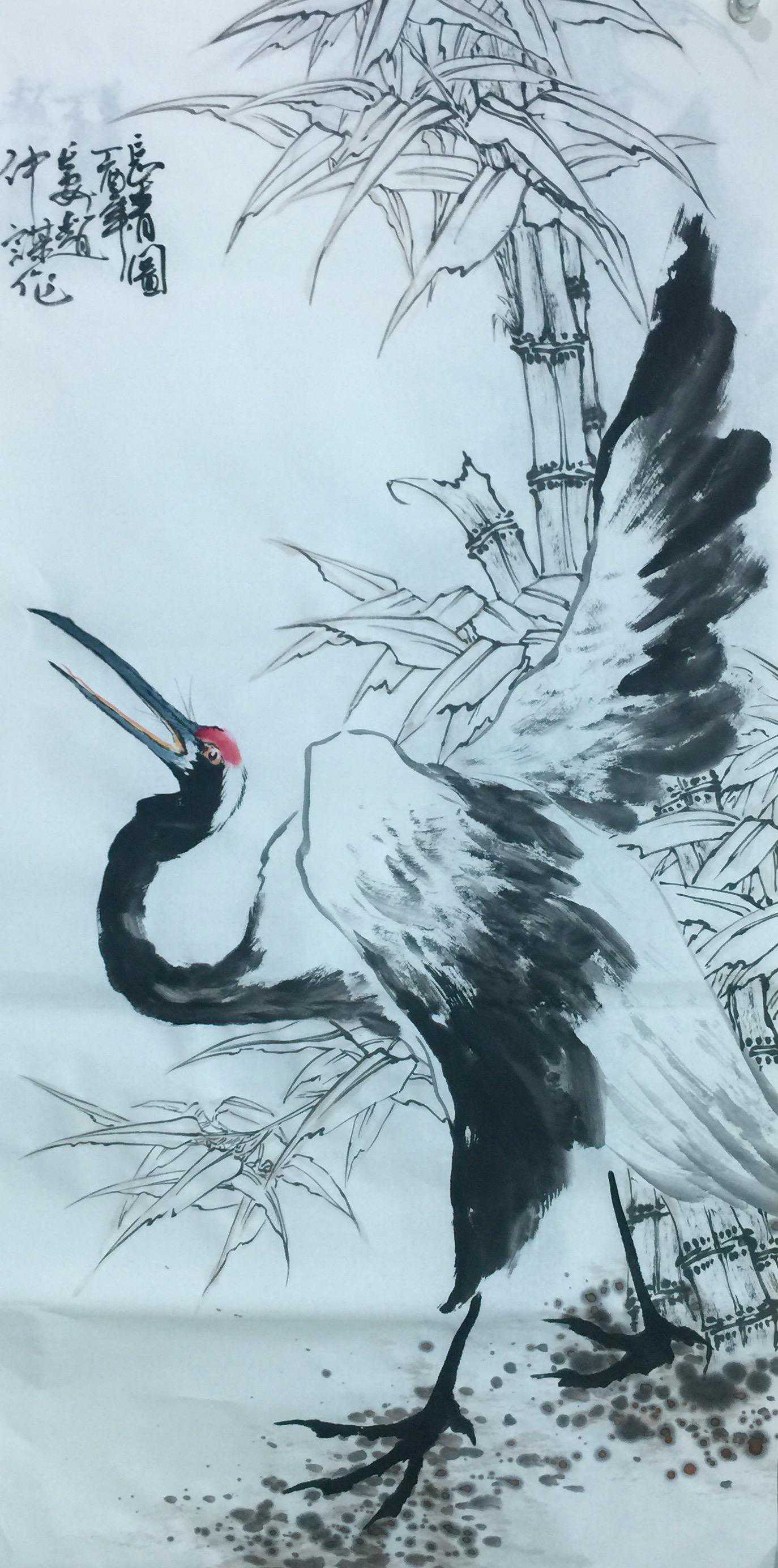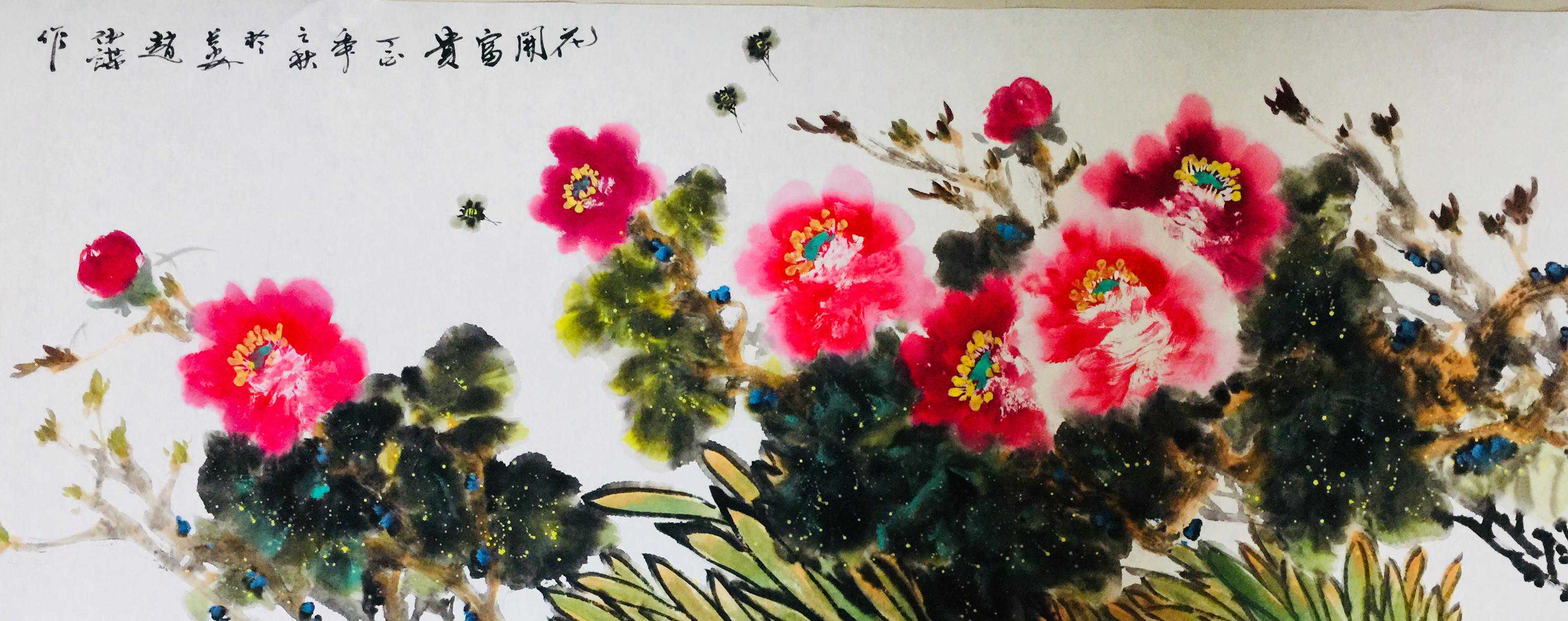 赵仲谋在写好书法艺术的同时,经过西安美院、清华大学美术学院高研班的进修,对花鸟画尤其山水画有了飞跃的进步,在他的画室看到了许多巨幅花鸟、山水创作作品。因在长期的探索与写生和进修的理论指导下,逐渐找到了一种属于自己的绘画语言,这种语言是新颖的,是建立在大写意与工笔花鸟上寓于表现力的,是通过艺术的整合提炼而成的。他将典雅与自然、飘逸与沉稳、简洁与繁杂、严谨与率意十分巧妙地融合于一体,在意与象、形与神、色与墨、收与放、紧与松等意境之间化增与减的调试,以求达到最佳的画面效果。所以,赵仲谋的作品具有双重审美特征,既有西方绘画重视光、影、色的一面,又有东方绘画突出意、情、神、趣的一面。或者说作品的形式更趋近于西方,但其神韵则是东方式的。赵仲谋花鸟画的更大突破,正在于一改纤巧之风,大胆立意、浓墨重彩,将浓重绵密的山水用墨实践和浑厚结实的汉唐造型技巧,进行了成功移植和运用,赋予了花鸟、山水画一种灿烂拙朴的英雄主义色彩,又不乏亲切灵动的生动情趣,令人一睹为快,为之震撼。赵仲谋的作品具有现代潜质的绘画色彩,那是他在首都清华美院高级研修班修成正果的再现,也是从理论到实践,在绘画作品中颇有现代审美意趣的线、色、墨、水的有机融合,是具有抽象精神的民间美术样式,那些饱满充盈、富有张力的画面,都暗含着他对现代人文精神的理解,在现代审美意境的转换上赵仲谋无疑有更高的代表性。