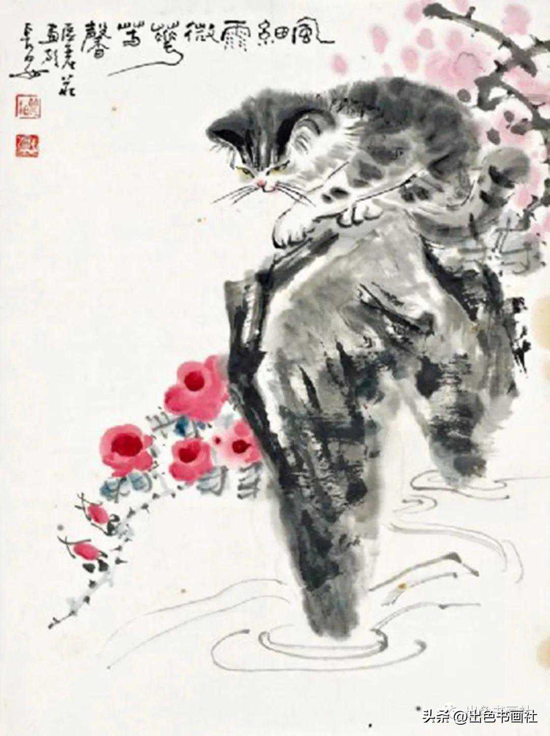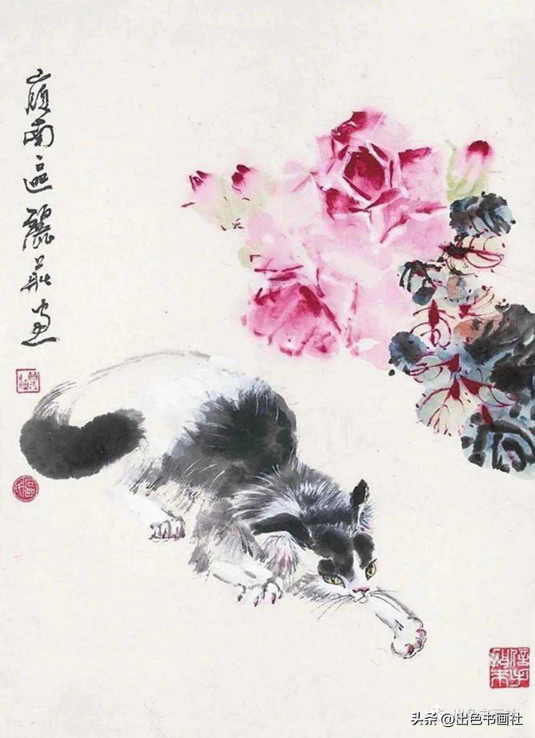 区丽庄曾经豢养了不少只猫,故能够对猫的刻画入木三分,画里的猫赋彩雅致,充满张力,焕发着蓬勃的生命气息。