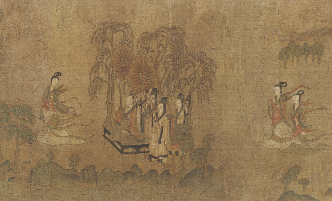 朱绍良老师多番研究各朝代书画,对其笔墨中的时代气息,描绘内容,绘画技法,个人风格等重要依据去鉴定古书画。如晋唐时期的人物画,就有“人大于山、高于树”的特征;我们熟知的《洛神赋图》就有此特征,而山水画,则是以线代皴,线内无皴,设色平涂。