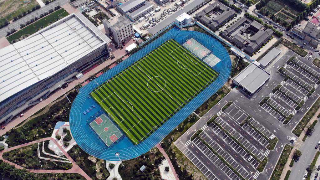 这是7月9日拍摄的容城县体育公园(无人机照片)。新华社记者骆学峰摄