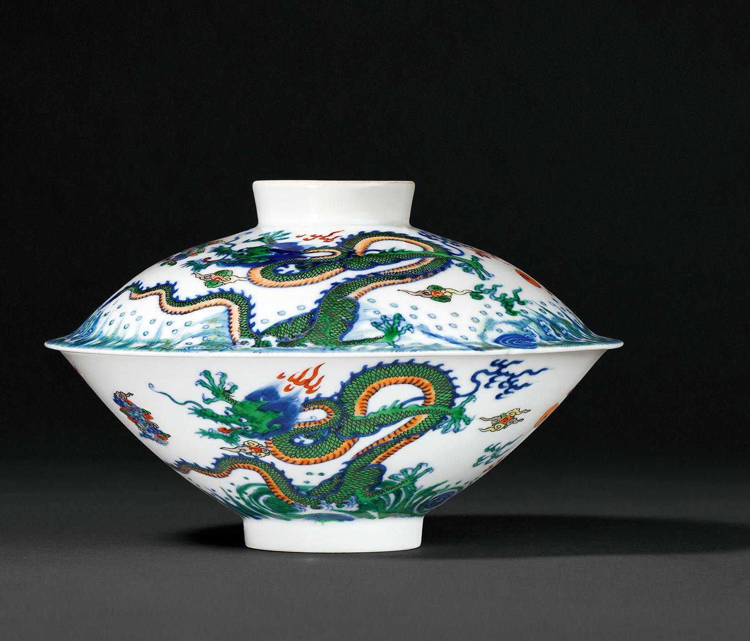 清雍正斗彩海水云龙纹盖碗口径20.5厘米
