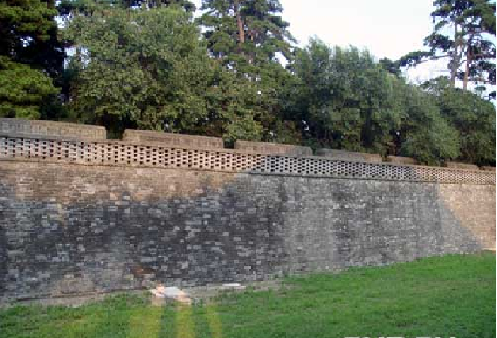 城墙上有马道、雉谍。城墙中间的马道宽5.4米、上铺设砖石,并向内倾斜。即所谓的“肥水不流外人田”。