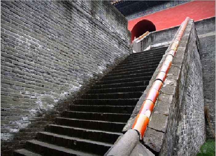 方城背面大明楼两侧,也备有上下城墙的梯道,能上下到月牙城和宝城。