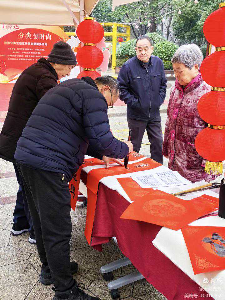1月31日,浙江省钱江书画院暨浙江省钱江书画研究院有关院士、书画师走进上城区四季青街道江锦社区,现场为社区居民、离退休人员、在职工作同志书写福字和春联。