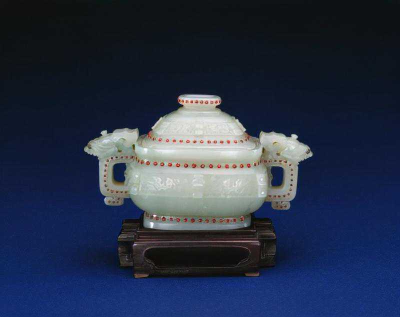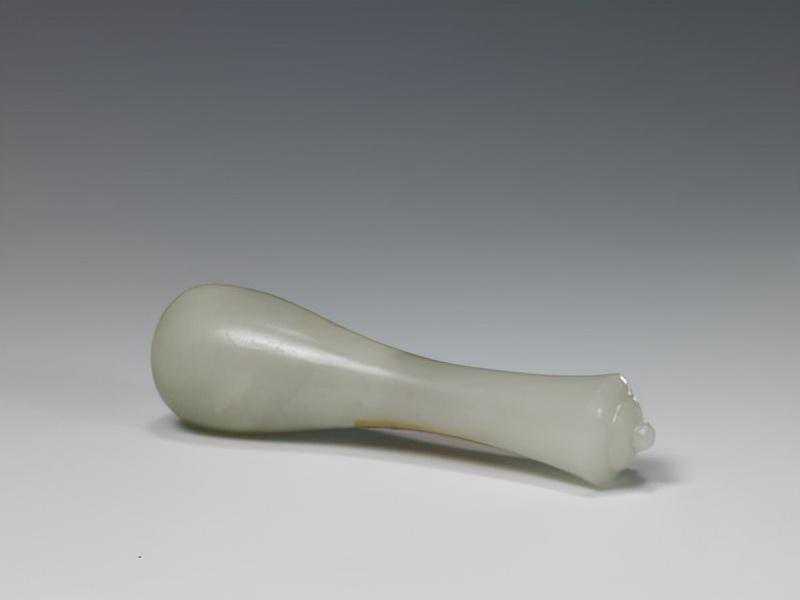 这是曾支持阿睦尔撒纳叛清的小和卓霍集占在支持阿睦尔撒纳叛乱失败后,遣使贡进的第一件痕都斯坦玉器。这也就是清代具有阿拉伯艺术风格的玉器首次进入内廷。平息回部大小和卓木的叛乱,扫清了和阗玉进入中原的障碍,大量新疆玉开始进入宫廷,这为皇家玉器工艺的发展提供了材料基础。乾隆帝喜欢痕玉玉器,在宫内设置有专门的痕玉作坊。