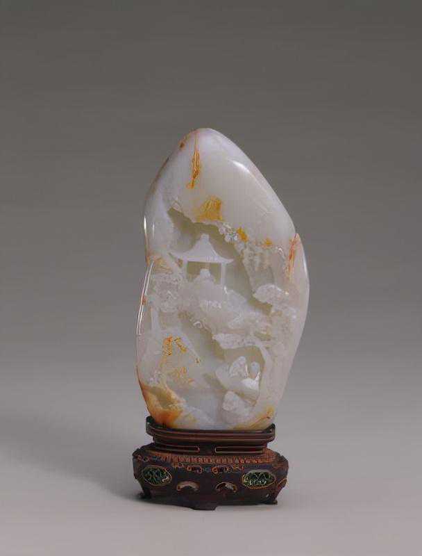 玉器表面琢碾带有叙事性和图画性装饰图案的做法,始于宋代。明代玉图画更为盛行,多将山水、人物、花鸟、典故、诗文意境移植到玉质器皿的表面作通景式的表达,但这种表现多是平面的。玉山子作为室内陈设之一,在清代十分流行,既有硕大无朋重达万斤的大禹治水图山子,也有精巧雅致可收纳于百事件中者,大小适中的案头陈设山子更是不胜枚举。玉山子多取材绘画、诗文、历史故事,精心布局,立体展示,有的更镌刻诗文、印章,成为集诗、书、画、印于一体的极富文人雅趣的三维雕刻艺术。