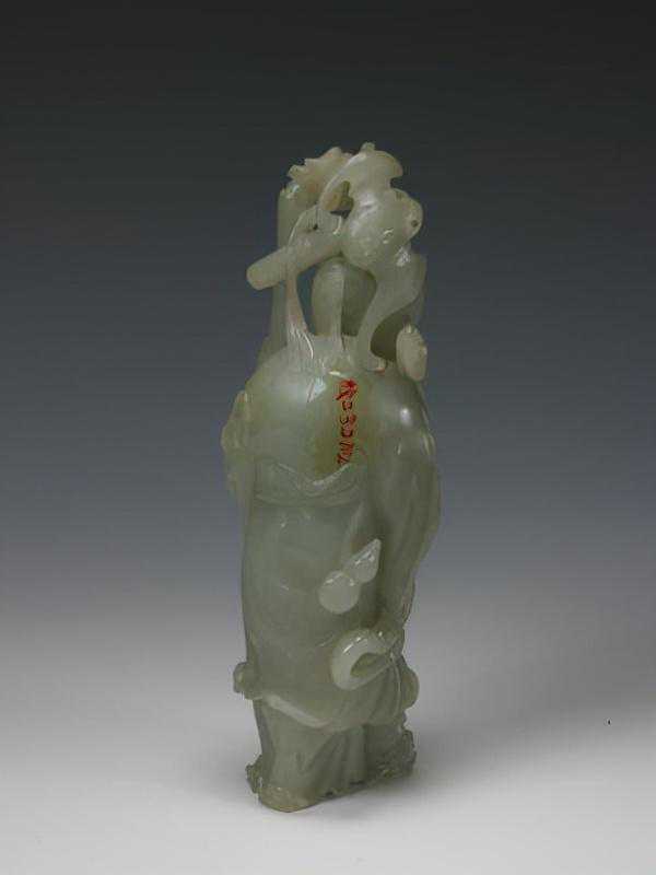 青玉寿星老人,清,高19.3cm,宽6.5cm,厚5.4cm。