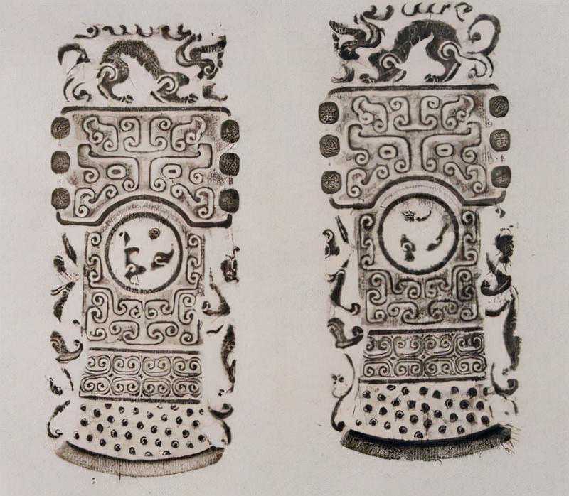 据分析,作品原系嵌于柱形器的角部,3件或4件为一组,这样的柱形器可能是玉琮之类的器物。