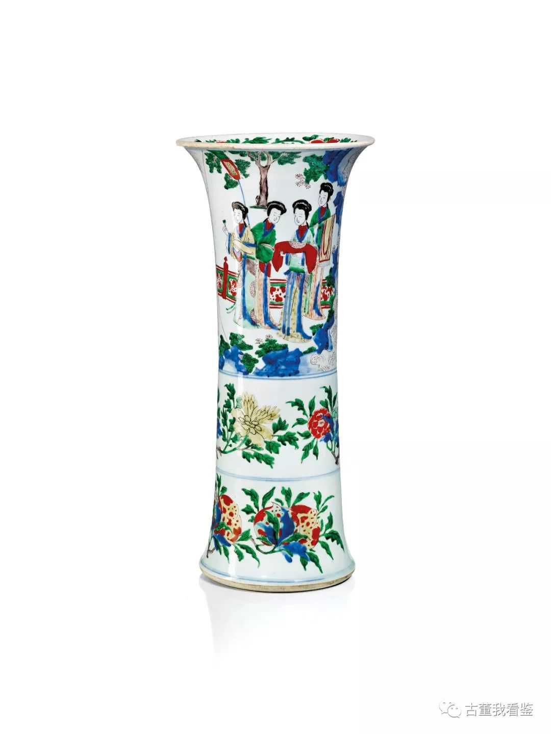 明末清初十七世紀五彩庭院仕女紋花觚
