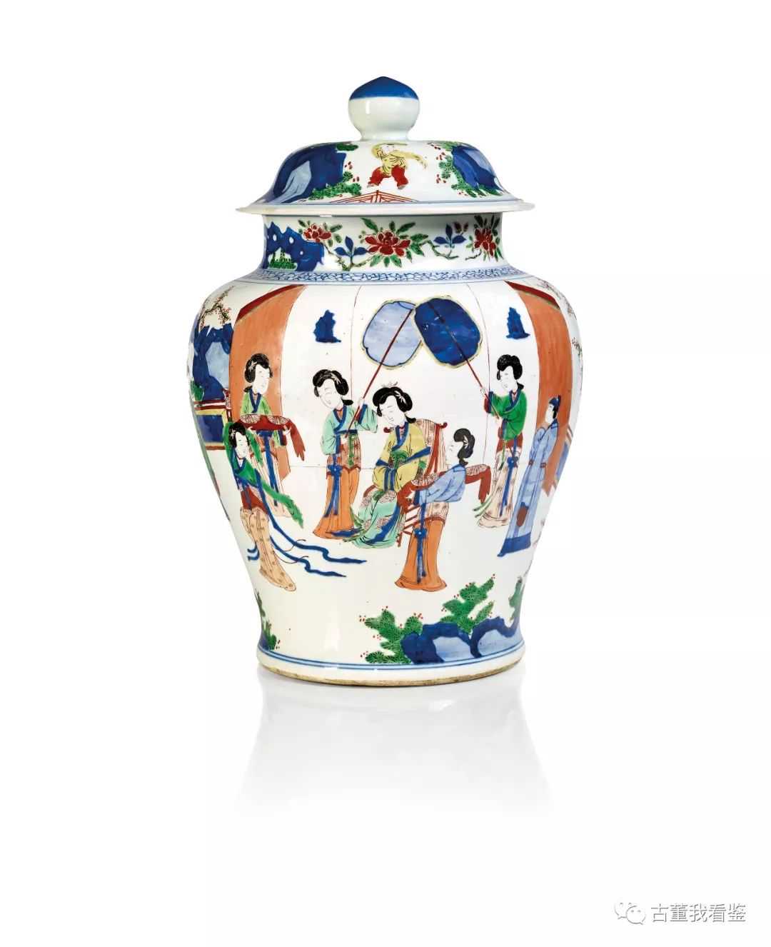 十七/十八世纪五彩庭院仕女紋蓋罐