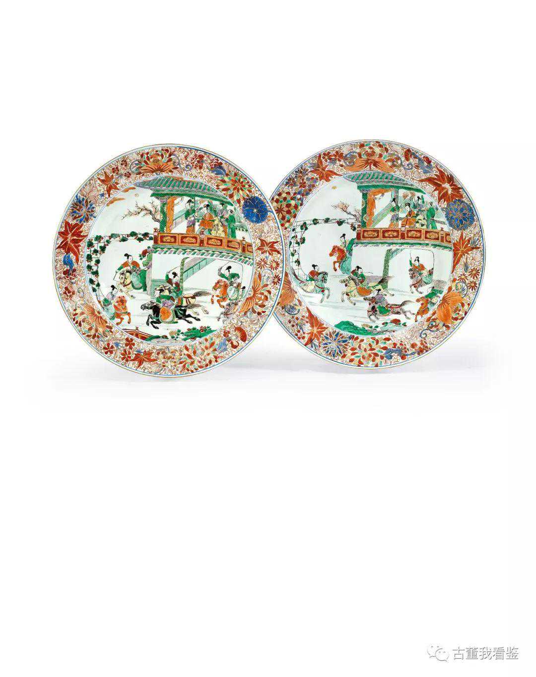 清康熙五彩人物故事圖大盤一對