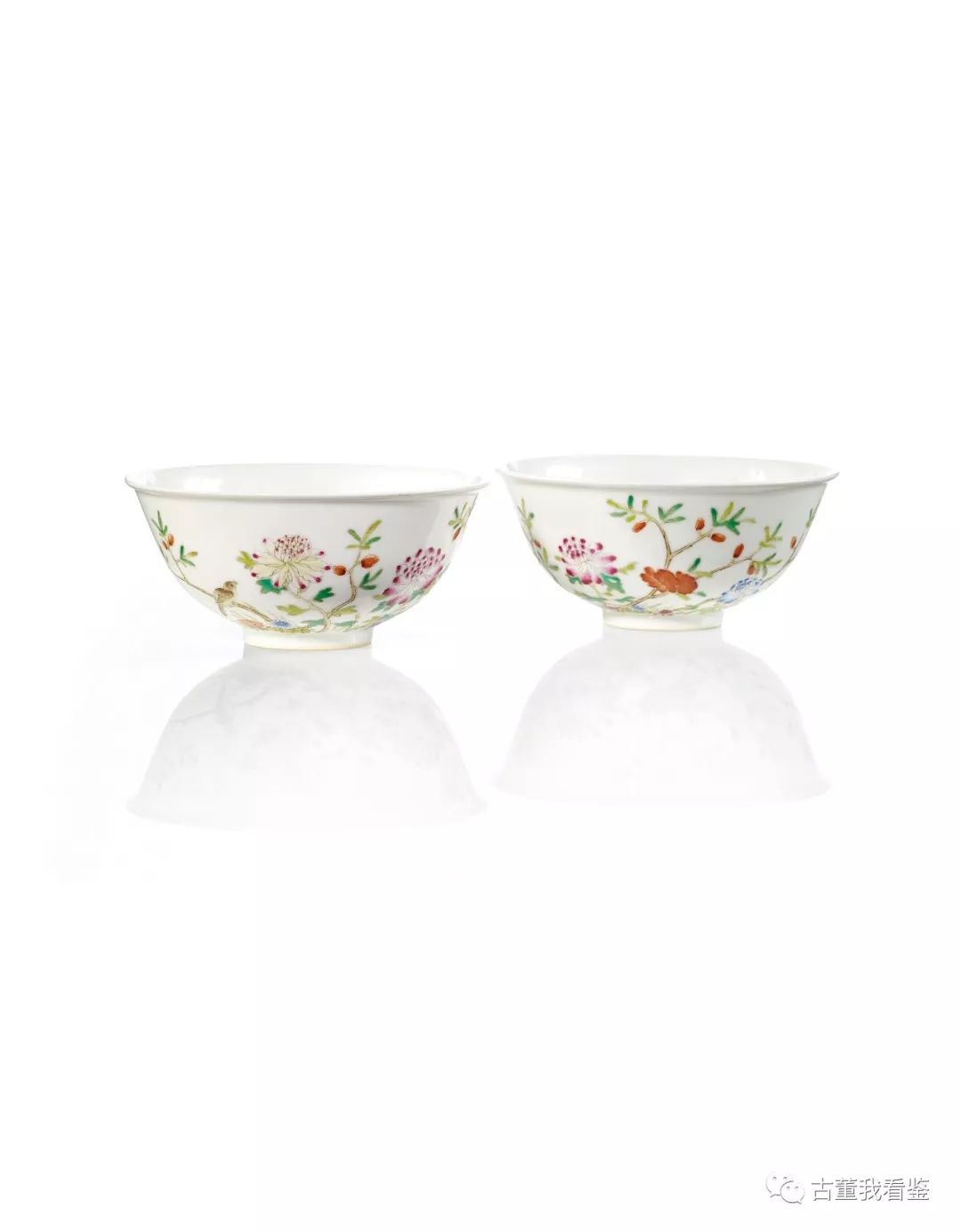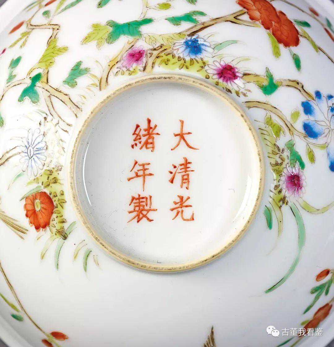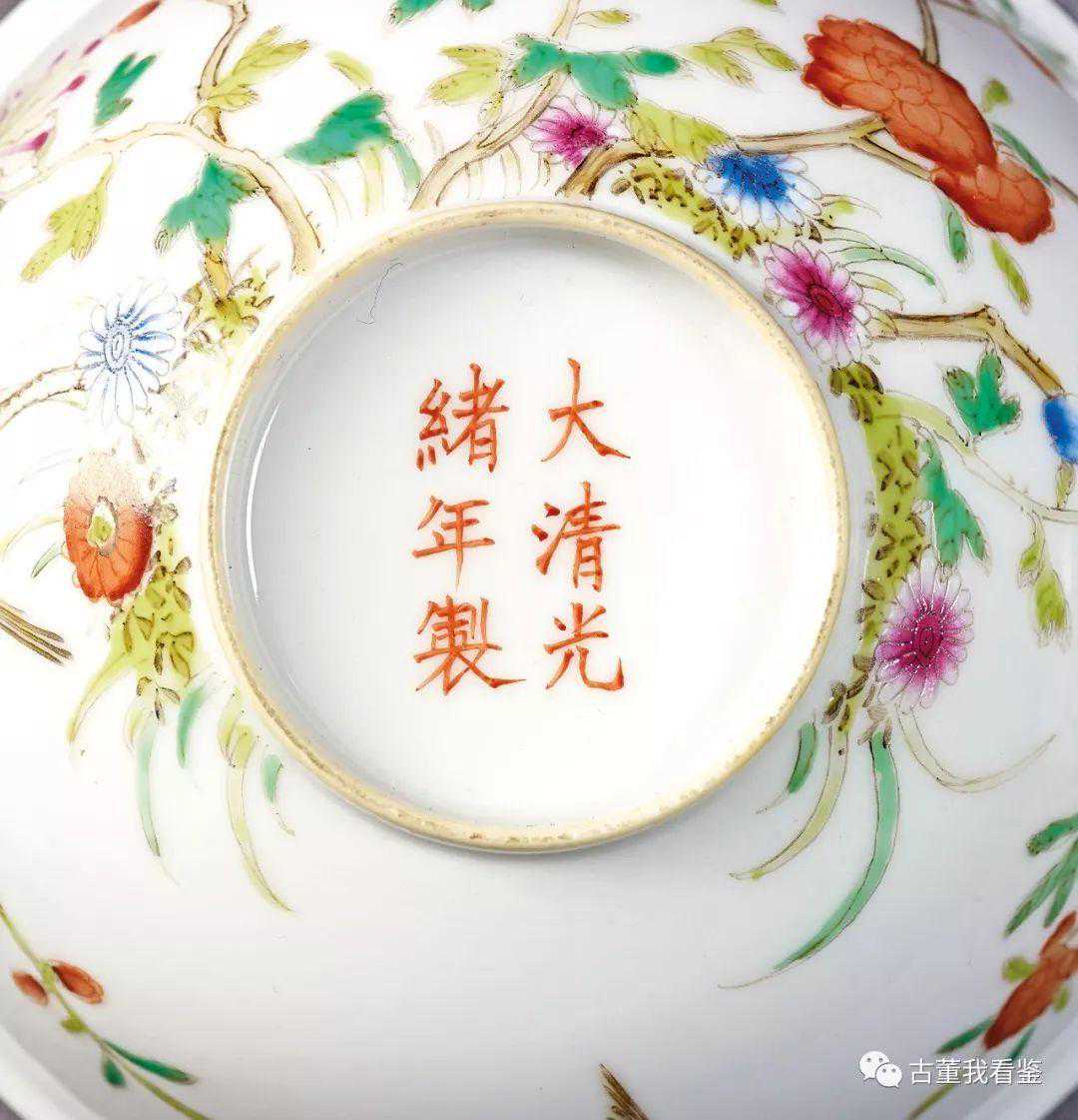 清光緒粉彩花鳥紋碗一對礬紅楷書款