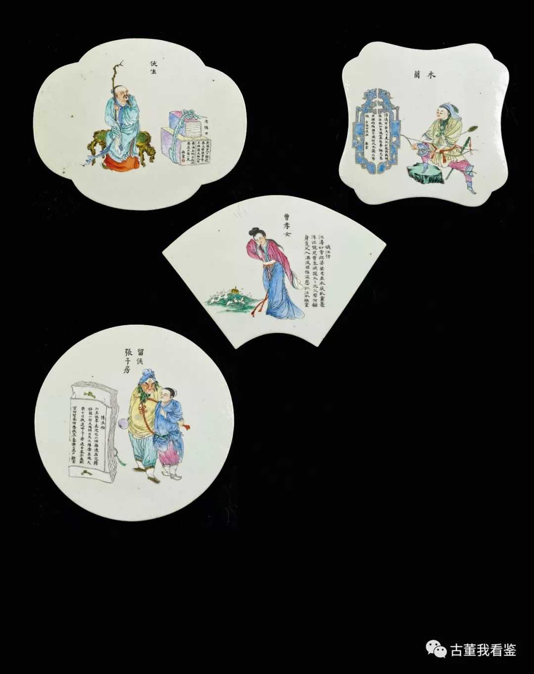 清末粉彩無雙譜圖瓷板一組