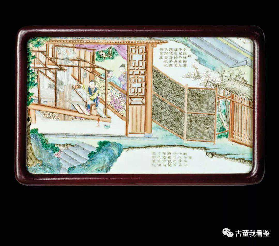 清乾隆粉彩耕織圖題詩瓷板