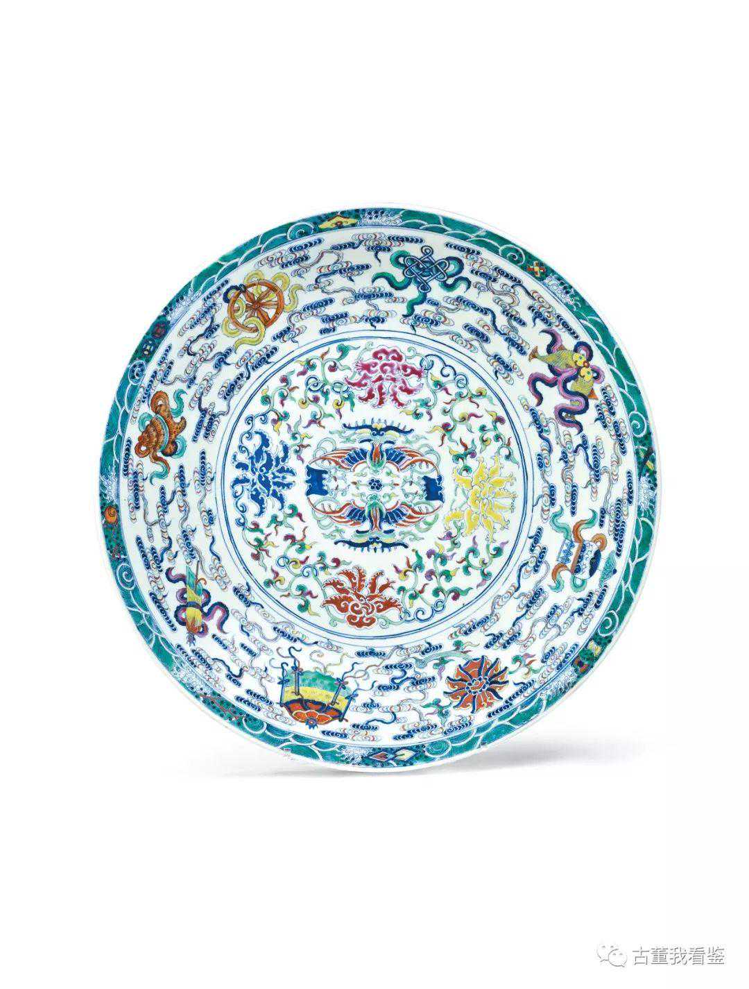 清末鬥彩八吉祥夔鳳紋大盤